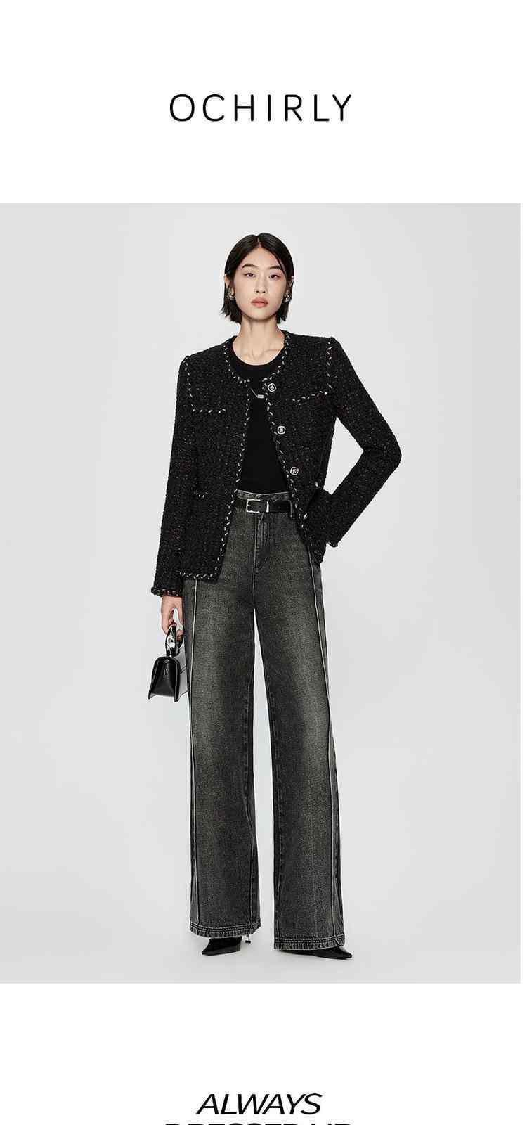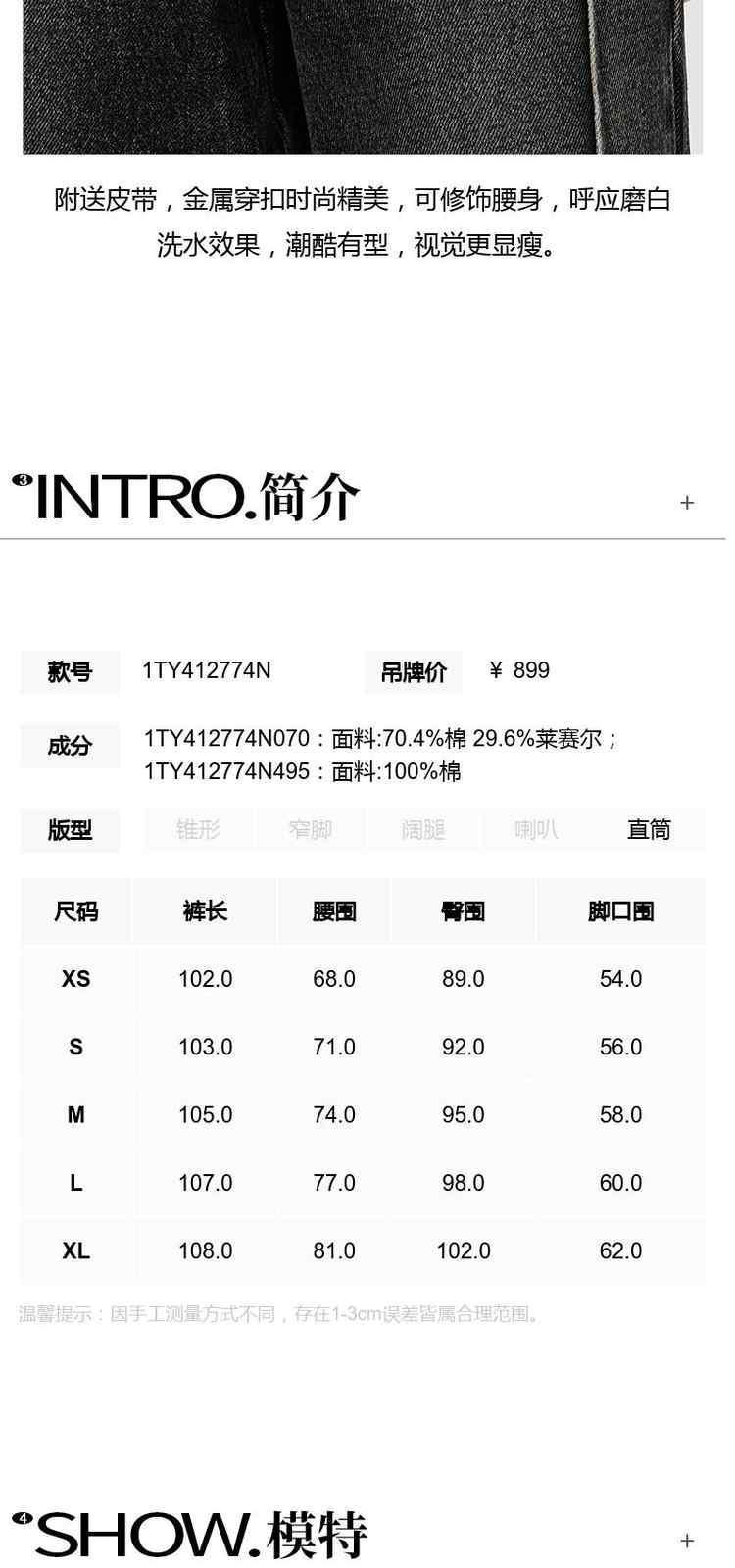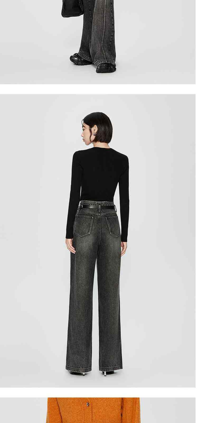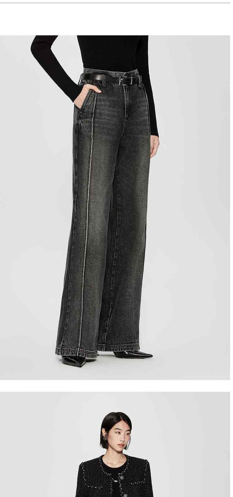 商品名称:春装 宽松显瘦配腰带美式复古阔腿牛仔裤女 468239