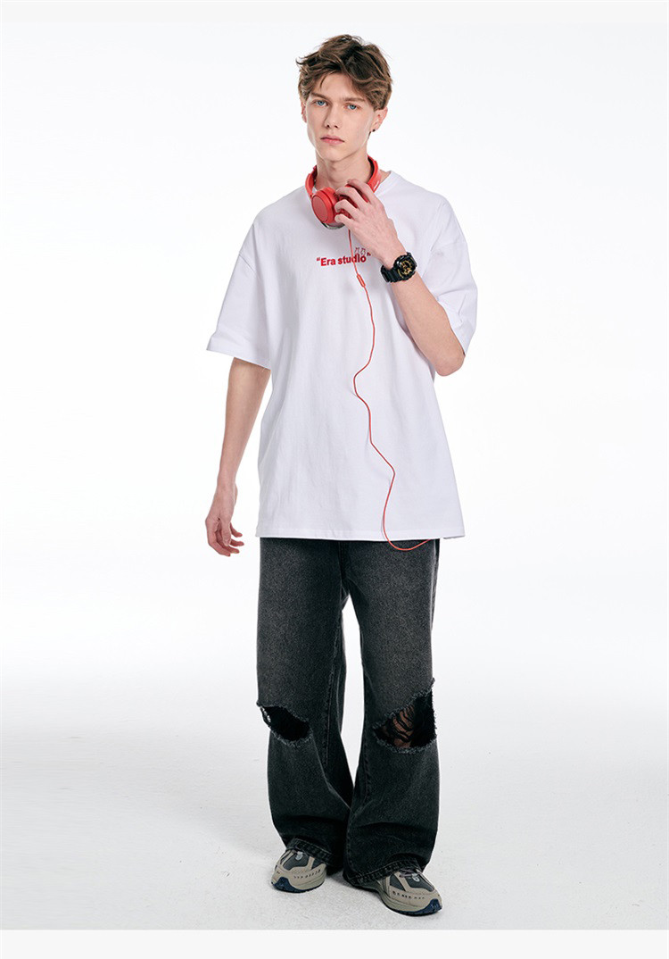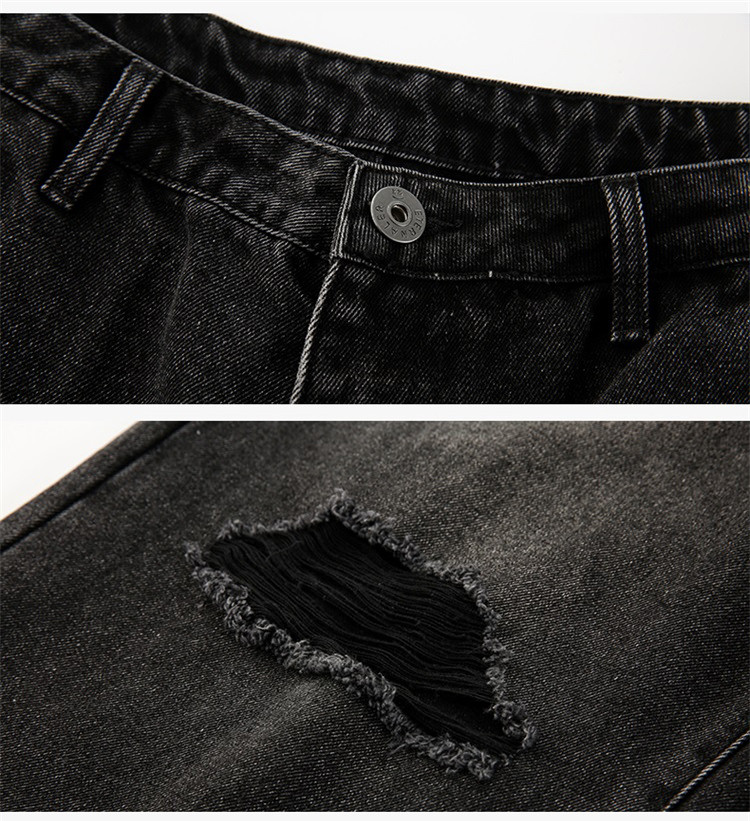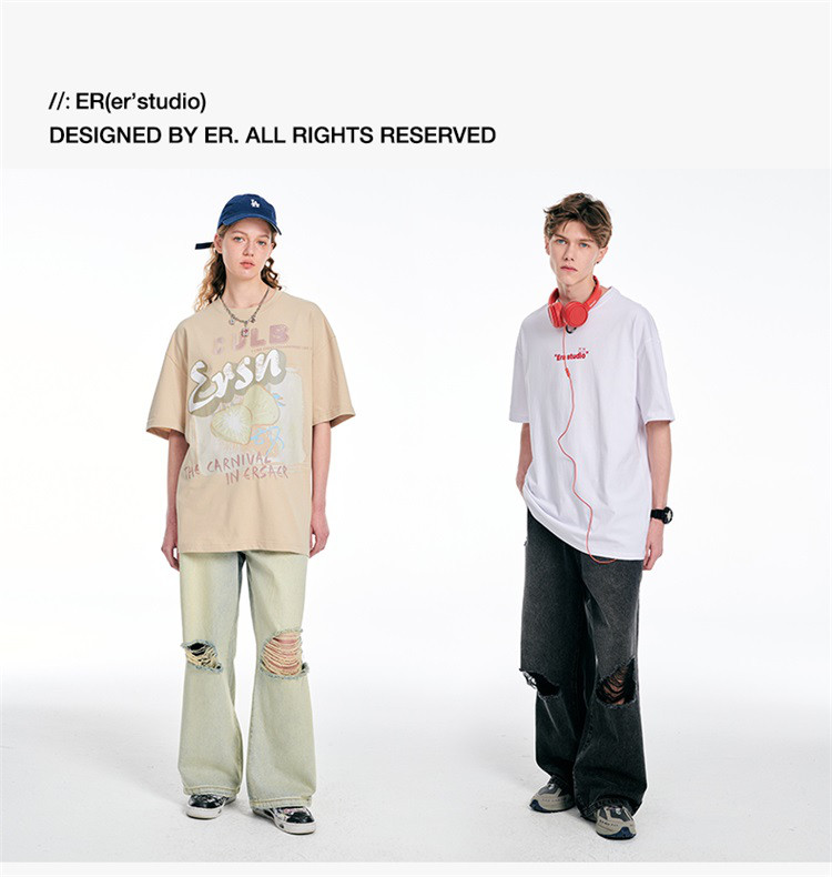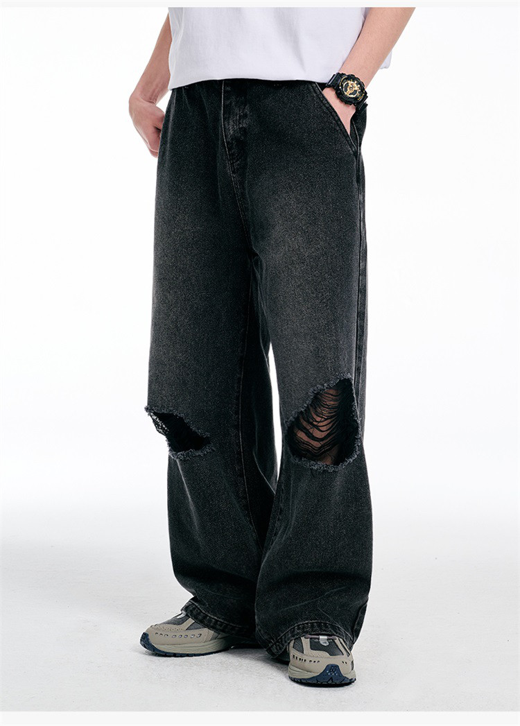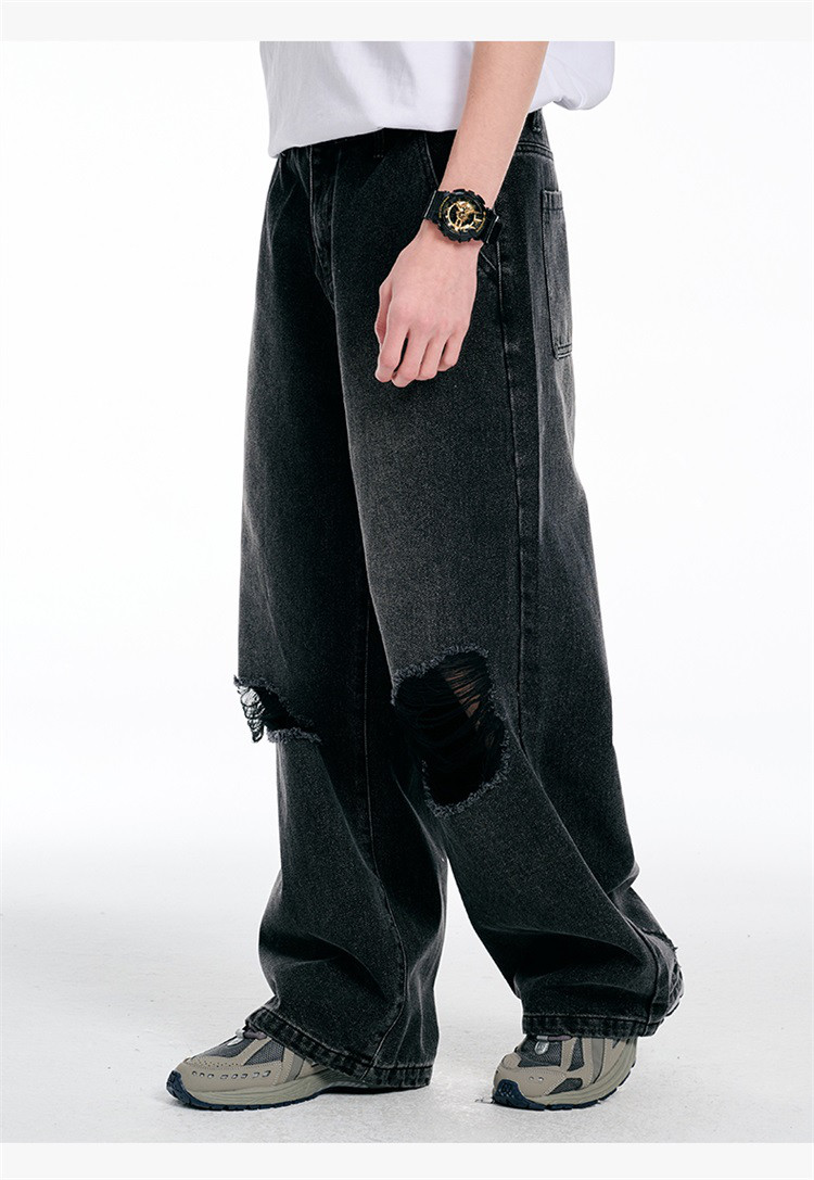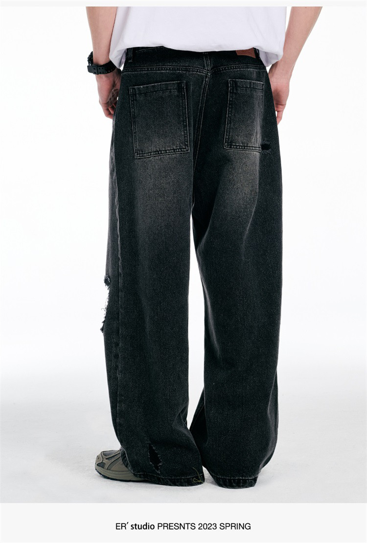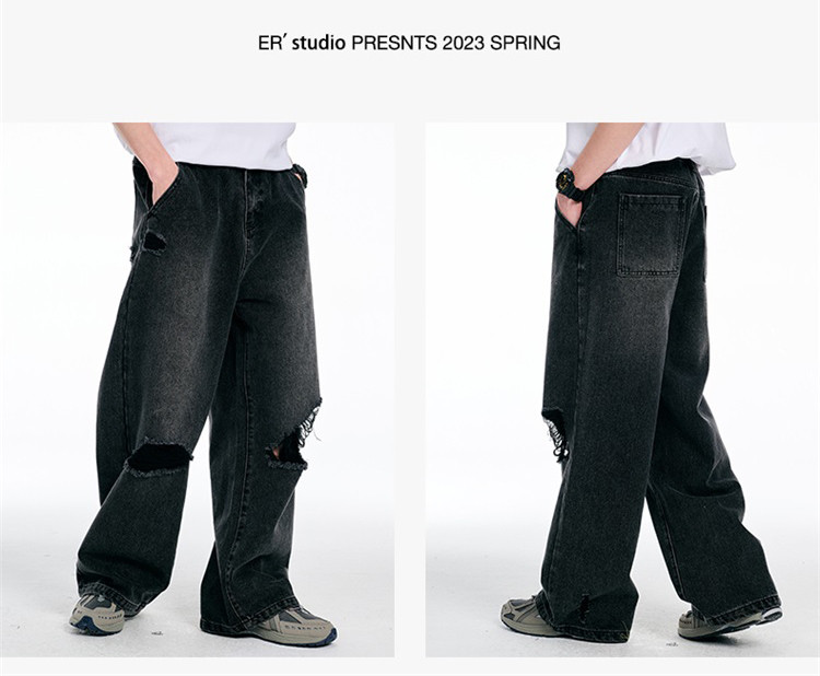 商品名称:复古破洞黄泥牛仔裤夏薄款潮牌直筒宽松美式高街阔腿长裤男女同款 353047