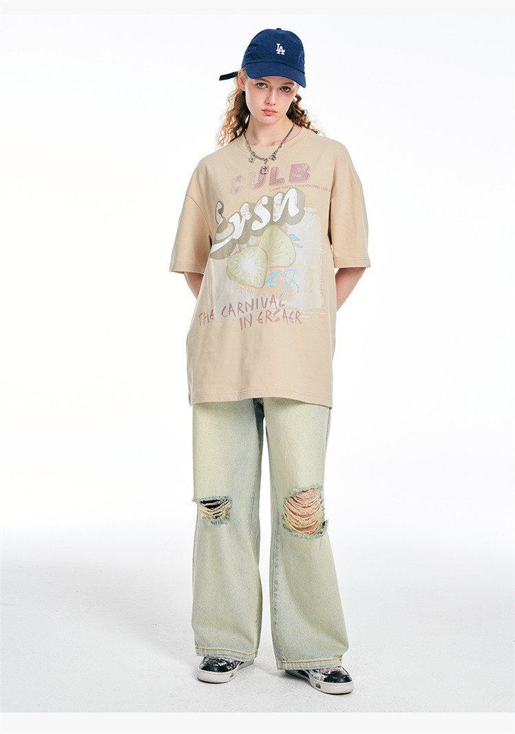 复古破洞黄泥牛仔裤夏薄款潮牌直筒宽松美式高街阔腿长裤男女同款 353047