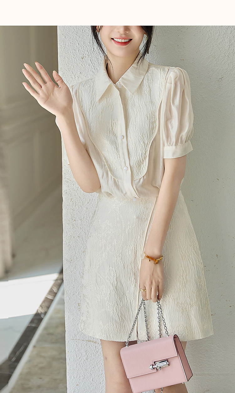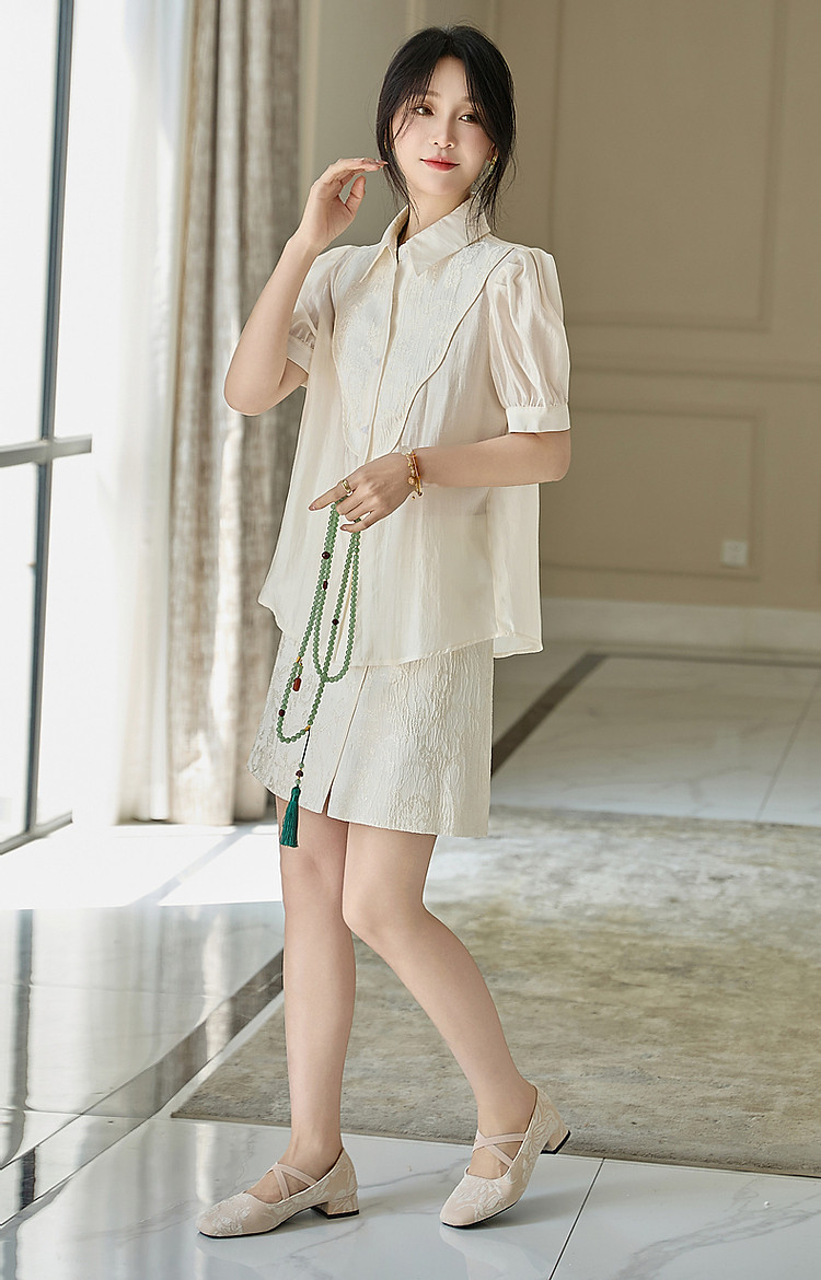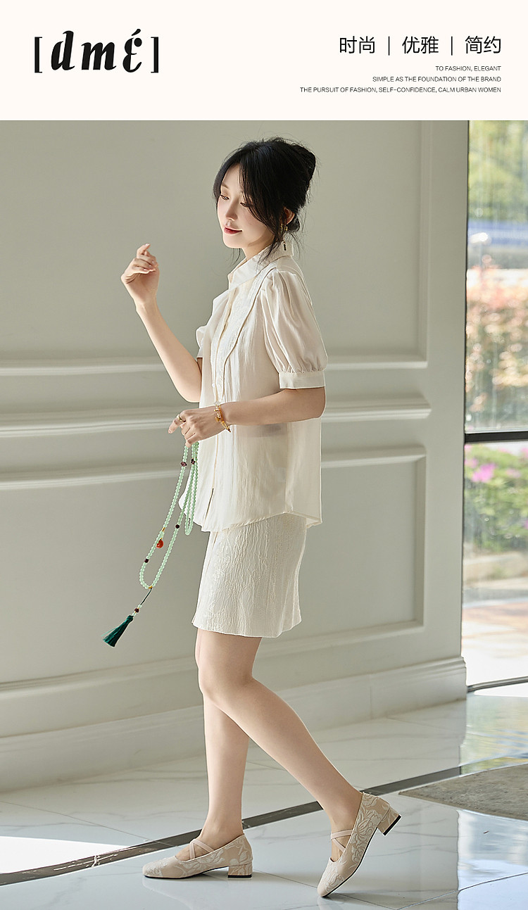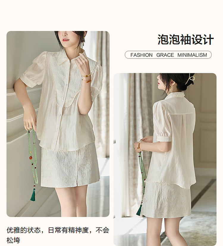 商品名称:【重磅莱赛尔】夏季国风新中式套装泡泡袖上衣拼接半裙女式两件套 843905