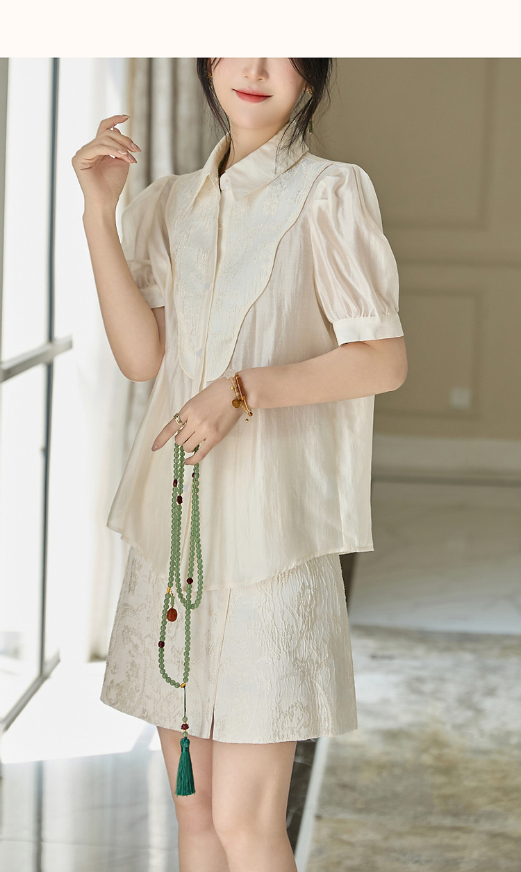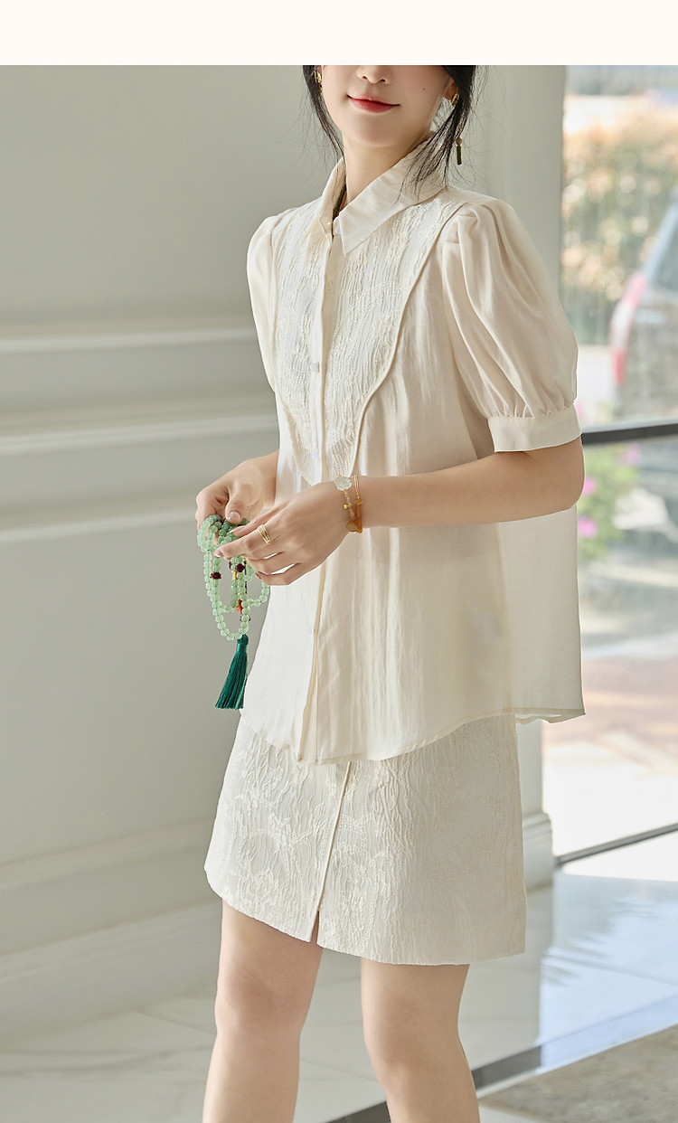 【重磅莱赛尔】夏季国风新中式套装泡泡袖上衣拼接半裙女式两件套 843905