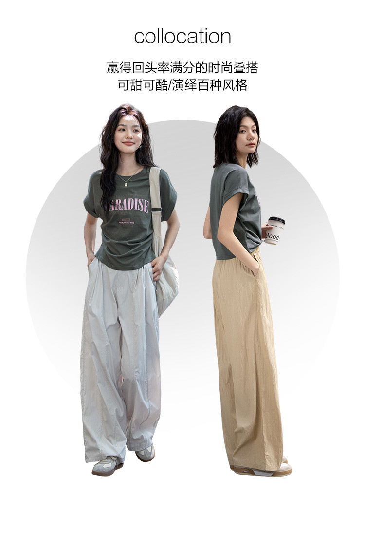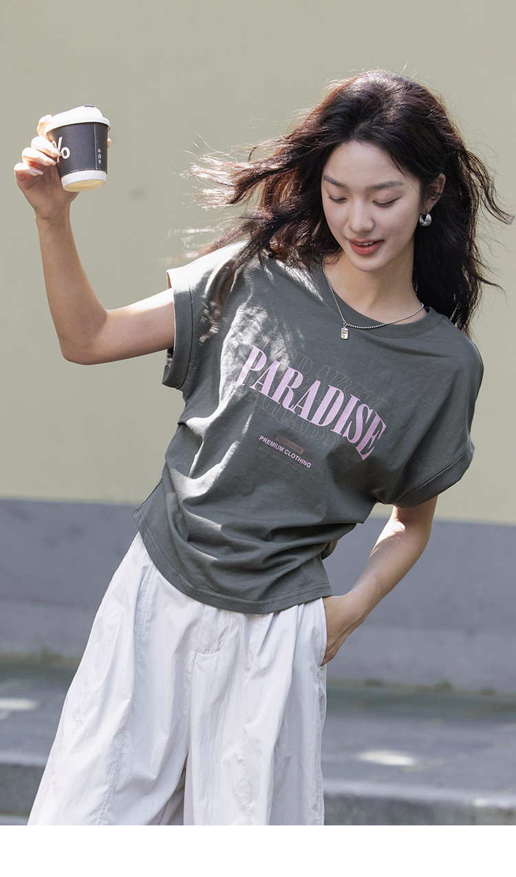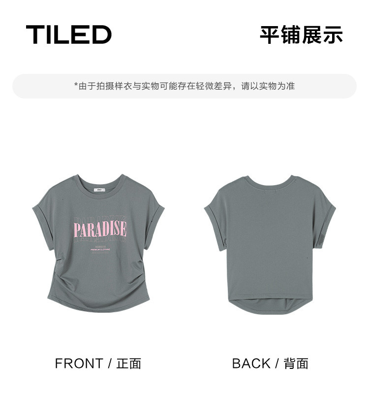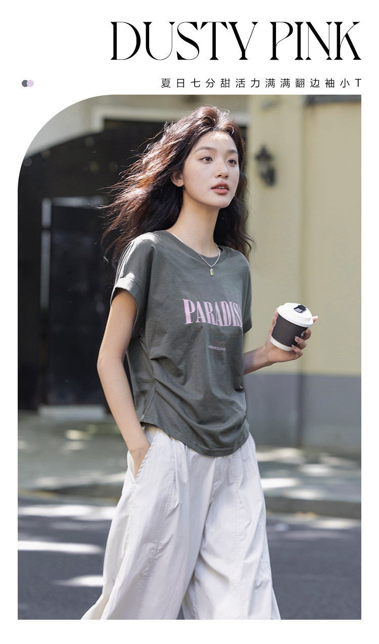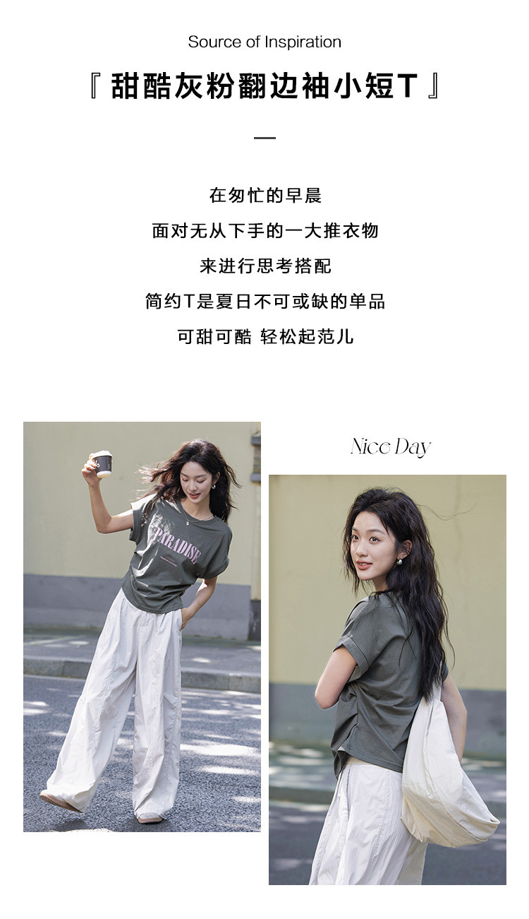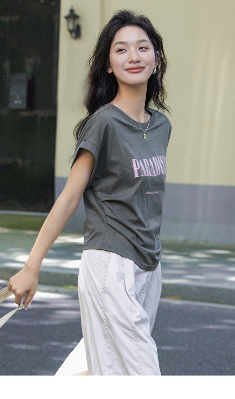 米子旗夏季女圆领字母印花T恤短款修身显瘦短袖上衣 687258