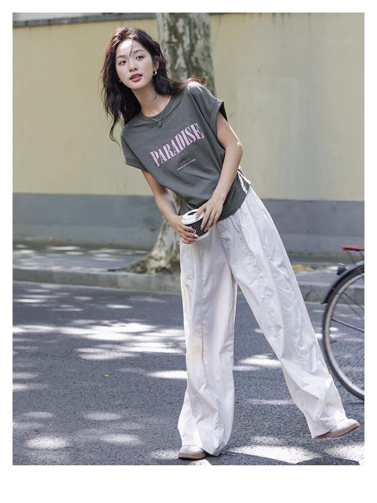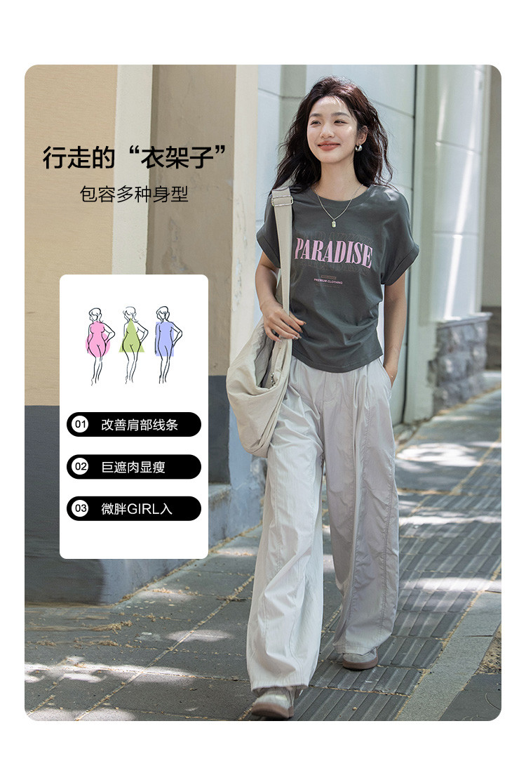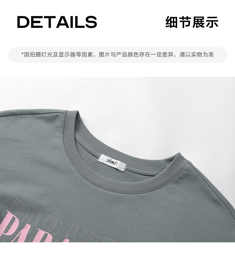 商品名称:【撞色字母T恤】夏连肩袖设计个性休闲圆领套头印花短袖 565314