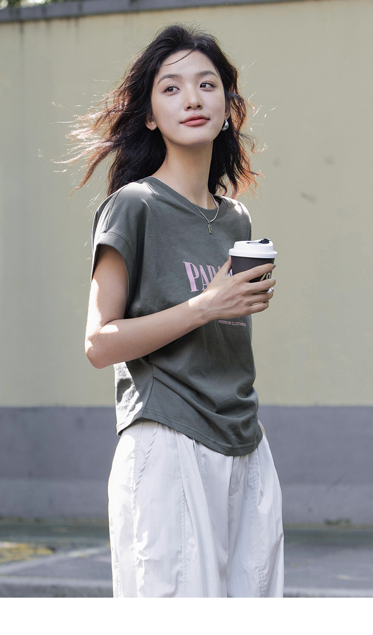 【撞色字母T恤】夏连肩袖设计个性休闲圆领套头印花短袖 565314
