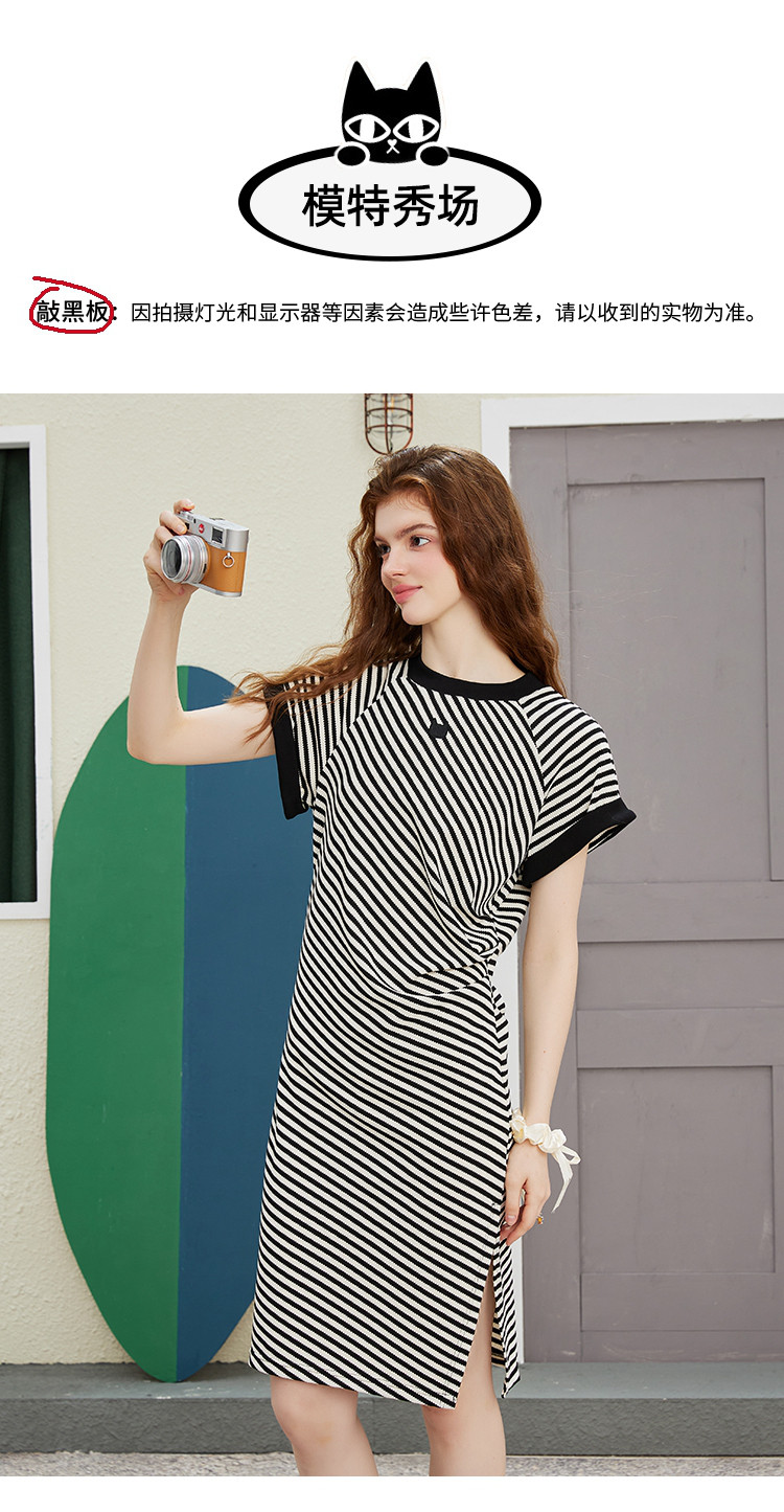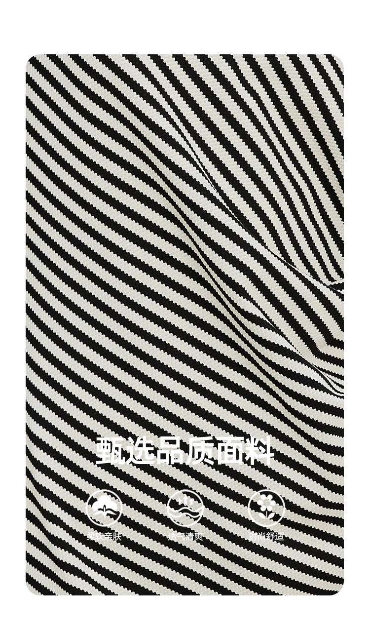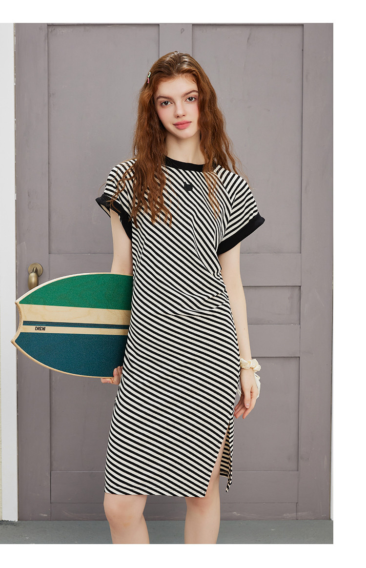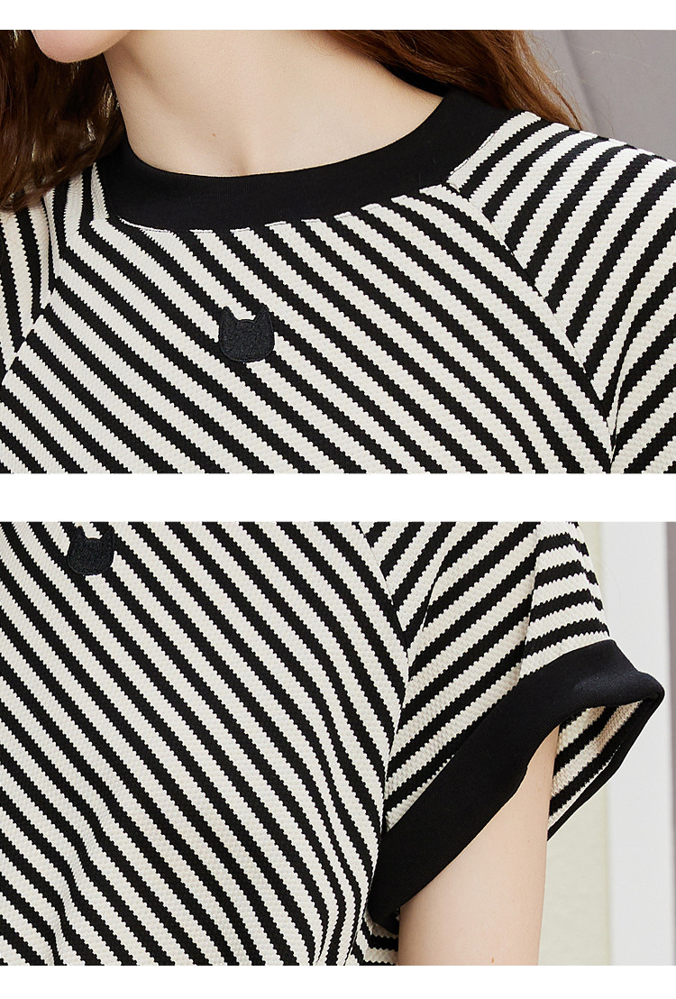 商品名称:收腰黑白条纹设计圆领开衩裙夏季休闲气质中款针织连衣裙 847261
