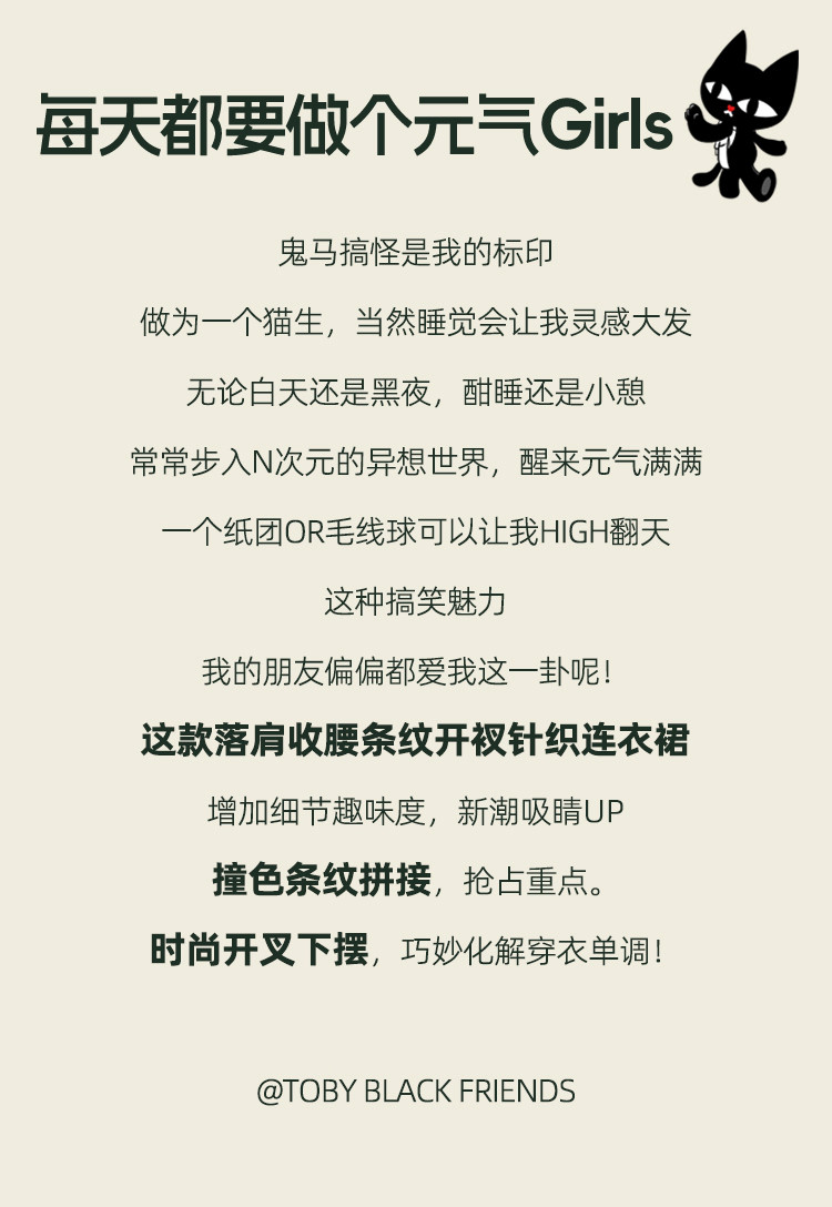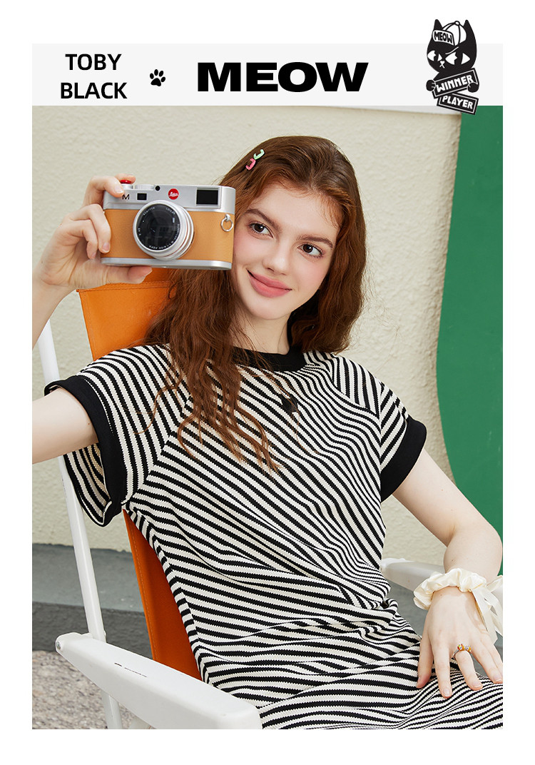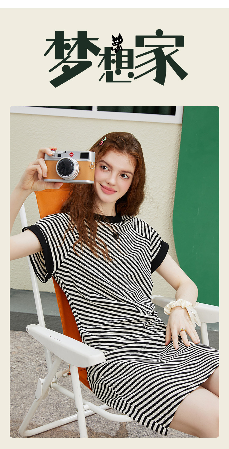 商品名称:收腰黑白条纹设计圆领开衩裙夏季休闲气质中款针织连衣裙 847261