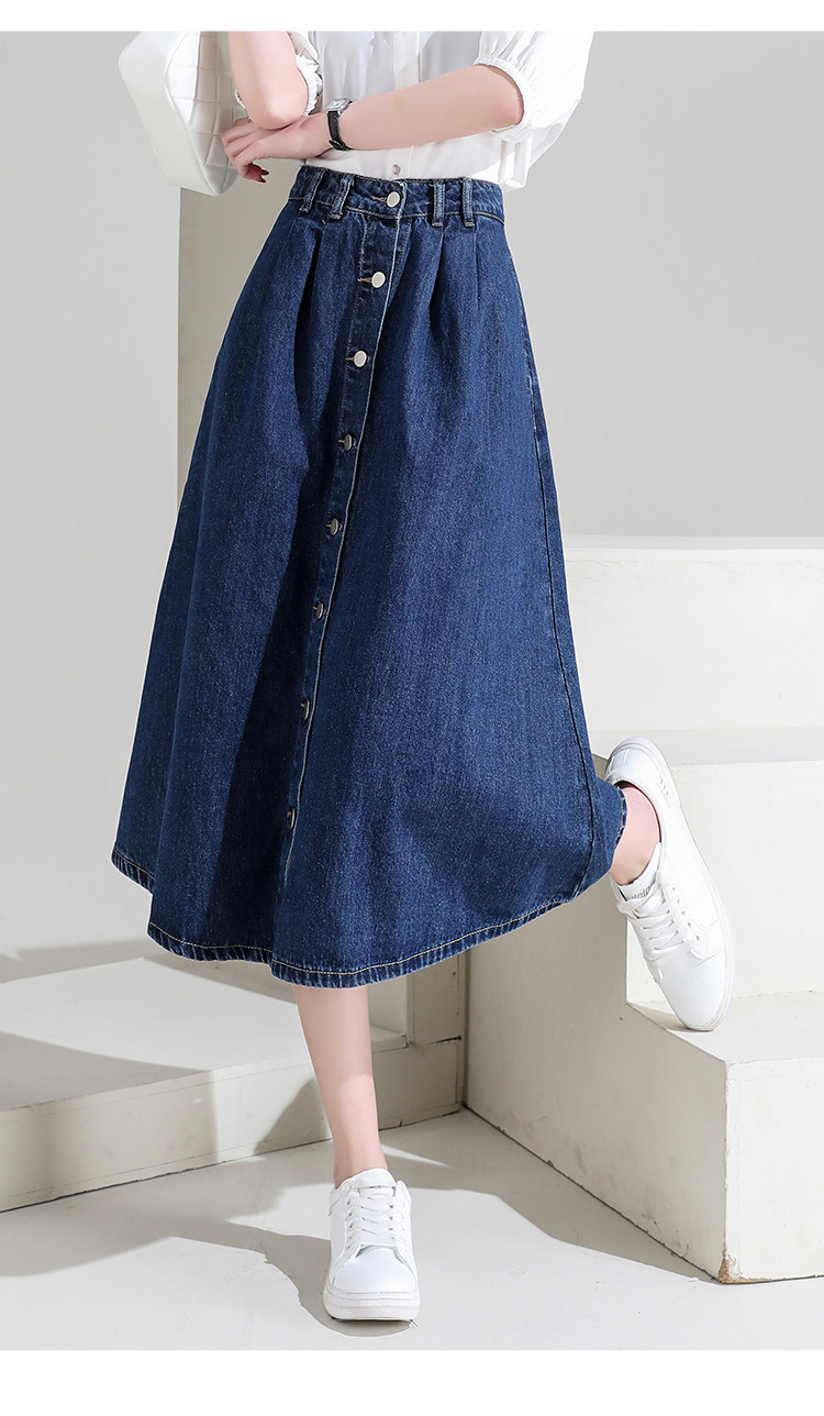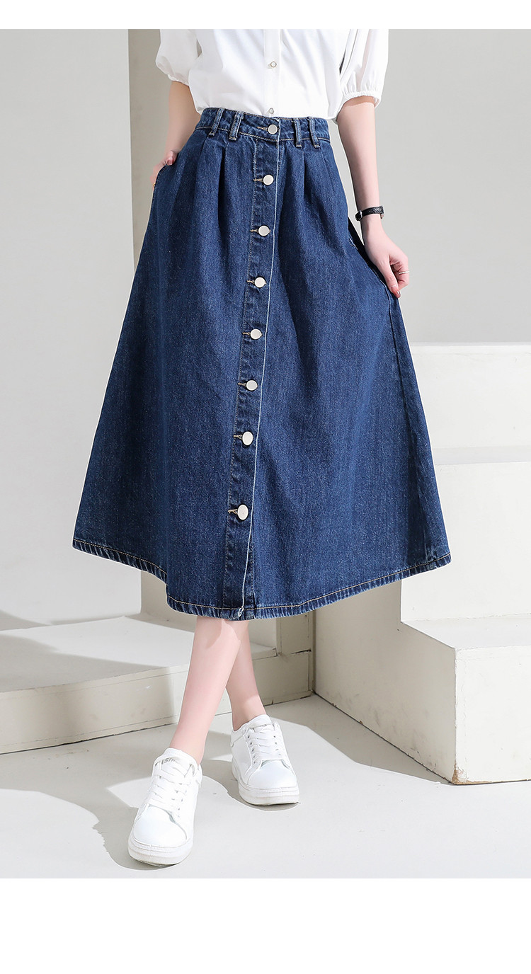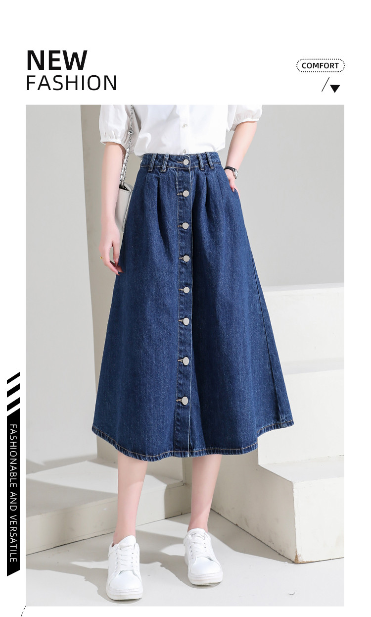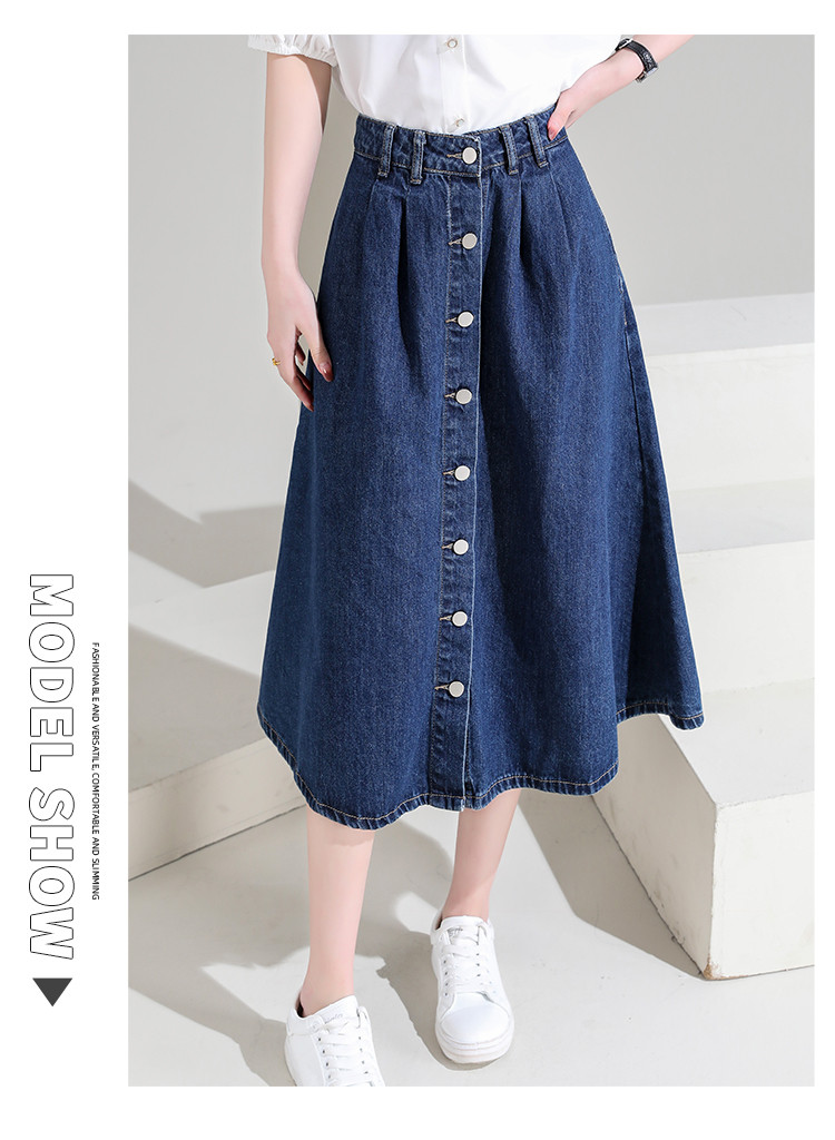 商品名称:中长款半身裙女年夏季高腰显瘦宽松排扣A字女士裙子 711000