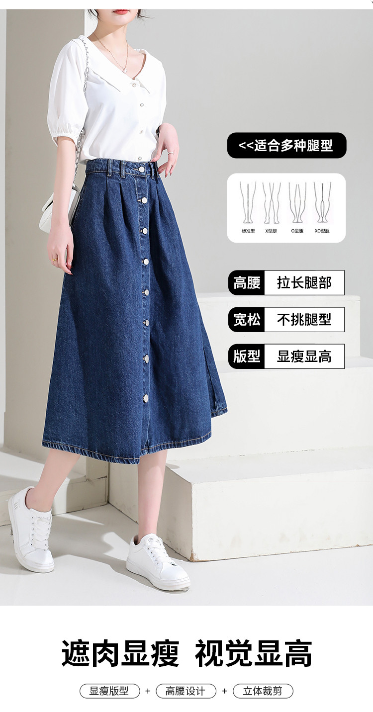 中长款半身裙女年夏季高腰显瘦宽松排扣A字女士裙子 711000