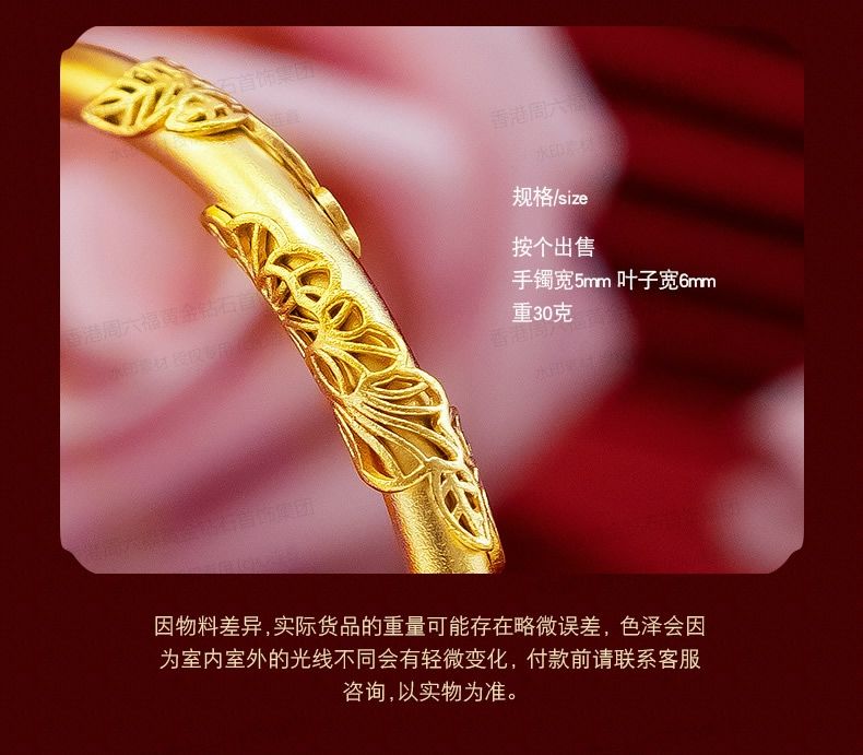 商品名称:香港周六福黄金钻石首饰K金传承系列-古法精雕工艺K金相思藤手镯