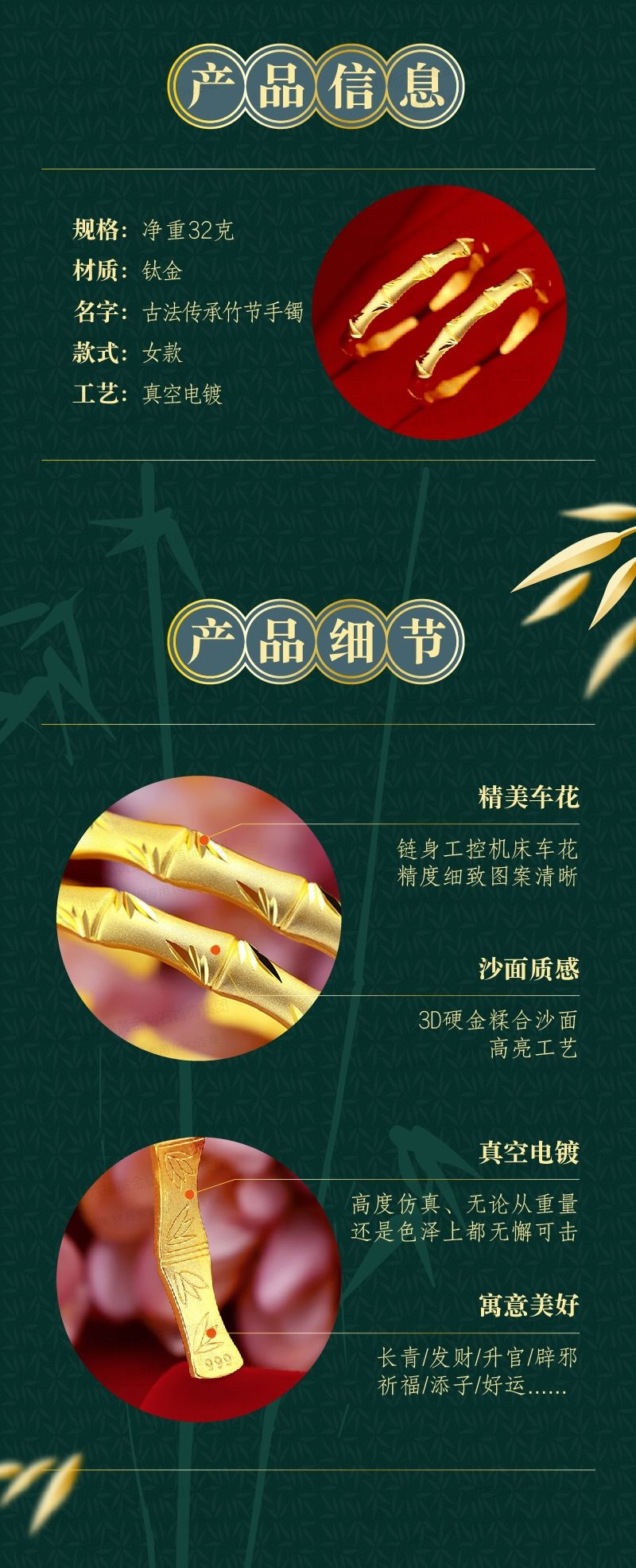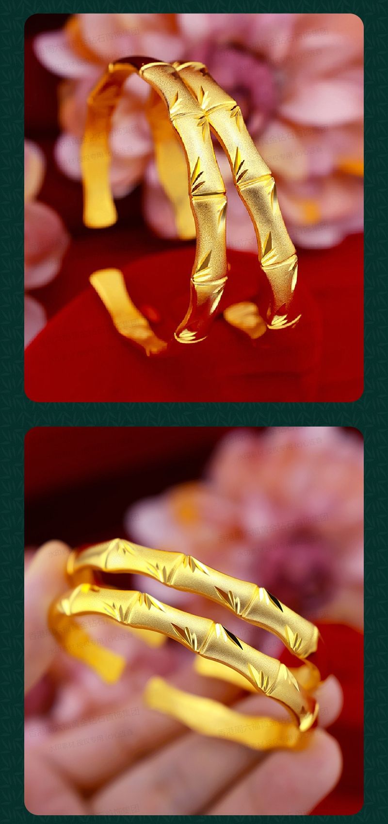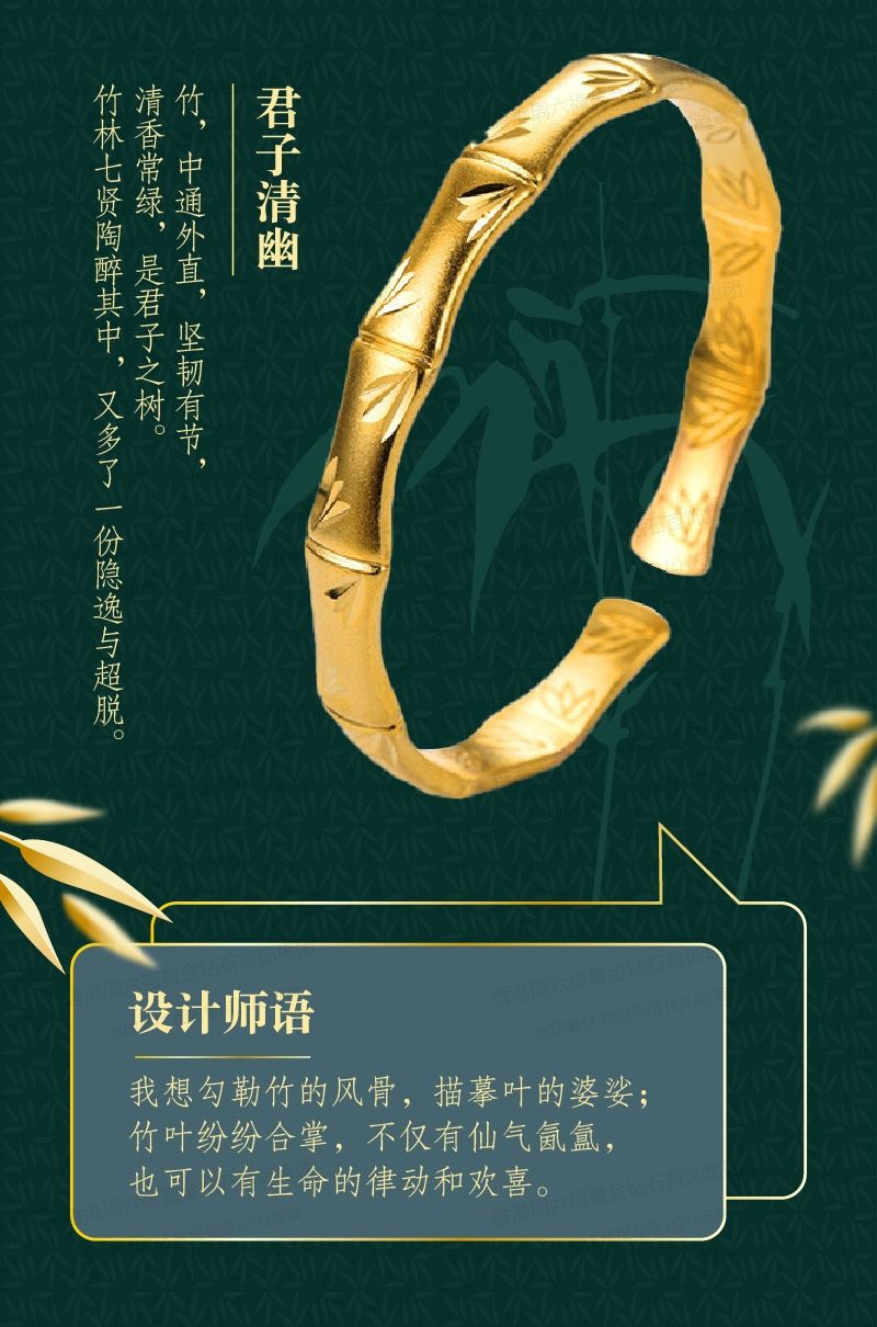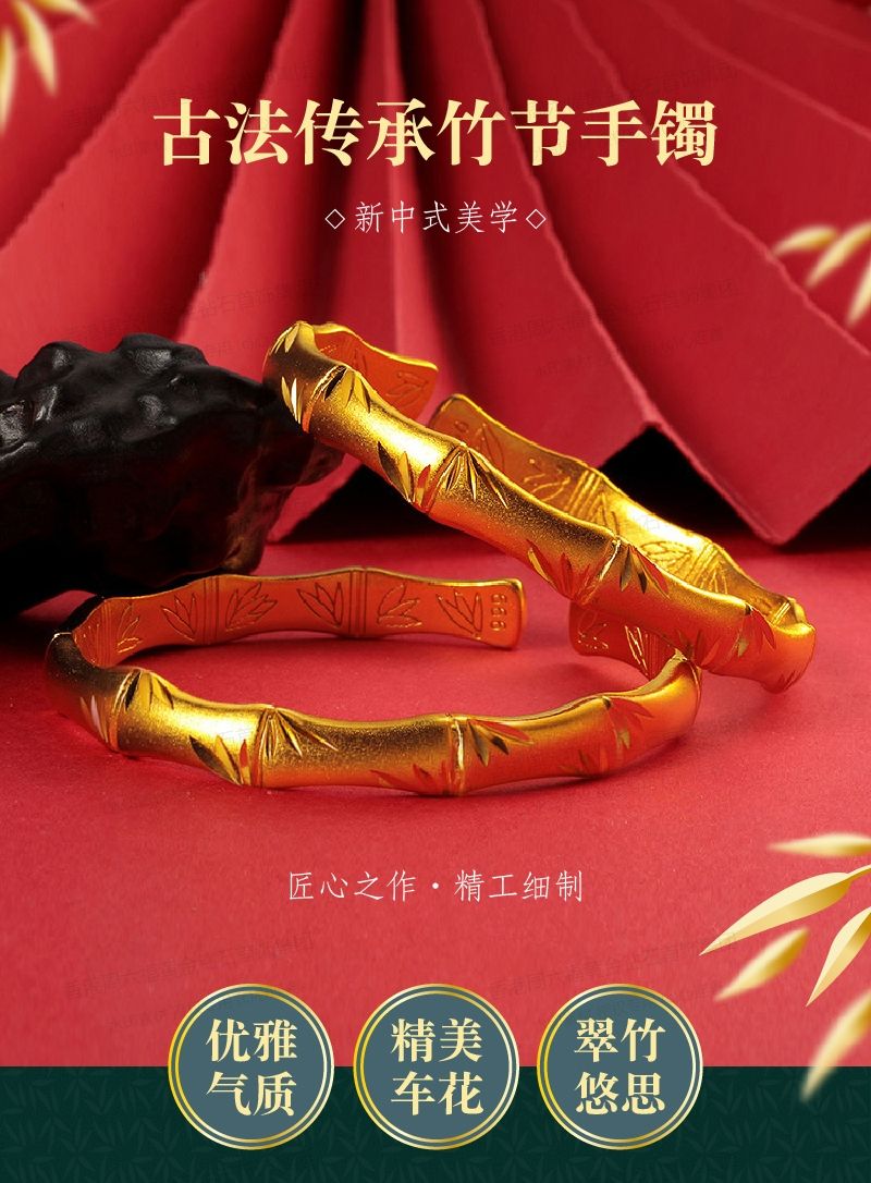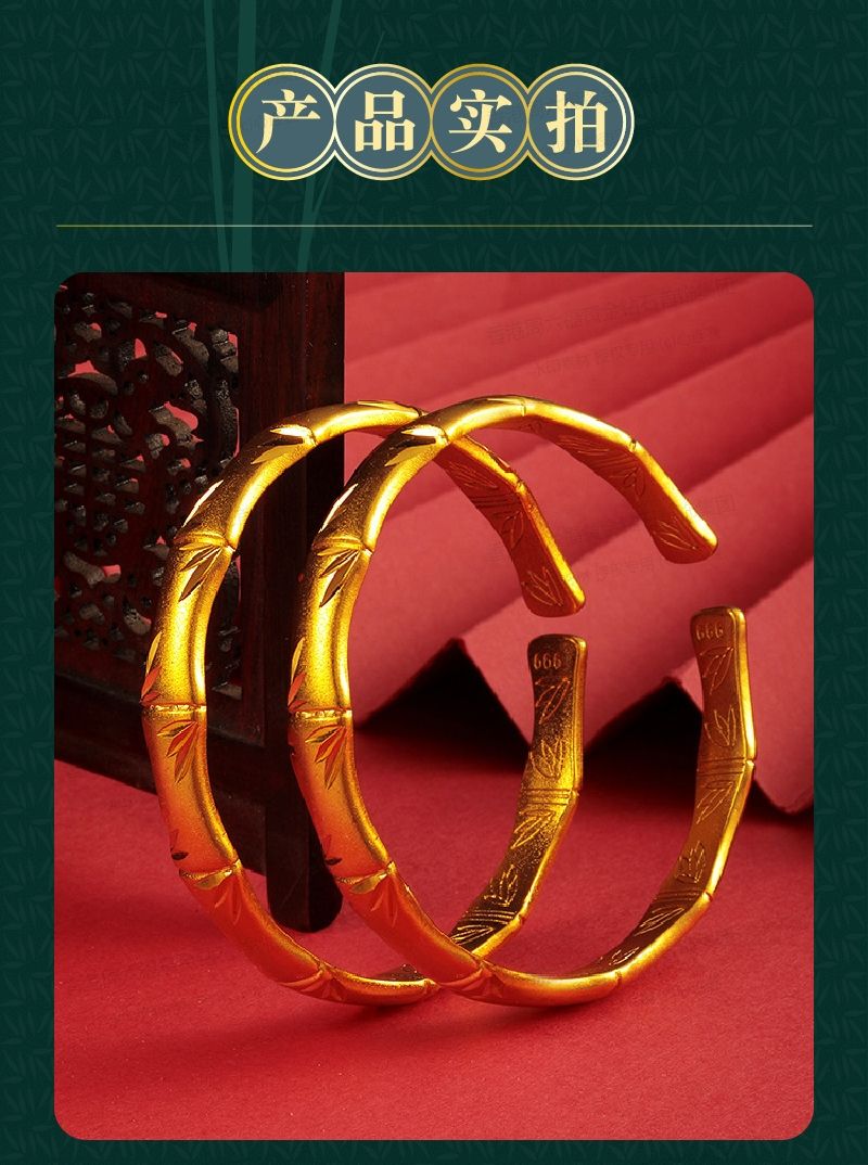 商品名称:香港周六福黄金钻石首饰K金古法传承竹节手镯-132