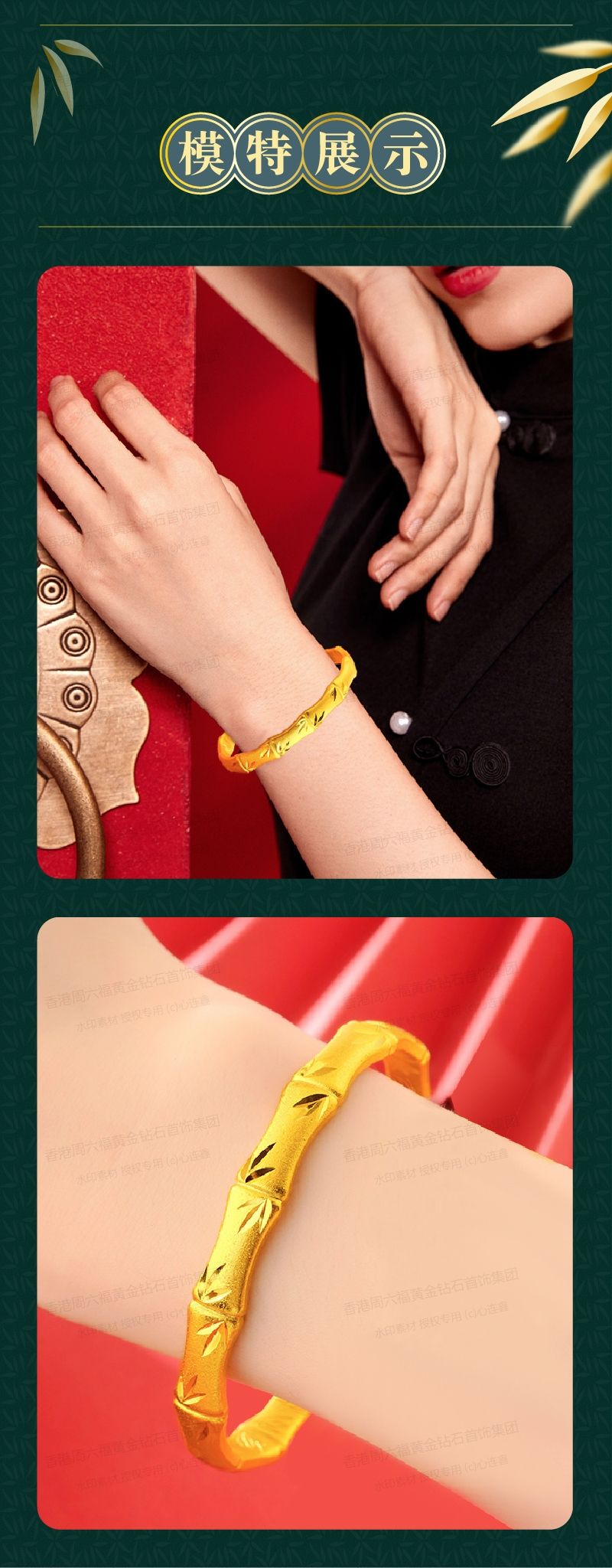 香港周六福黄金钻石首饰K金古法传承竹节手镯-132
