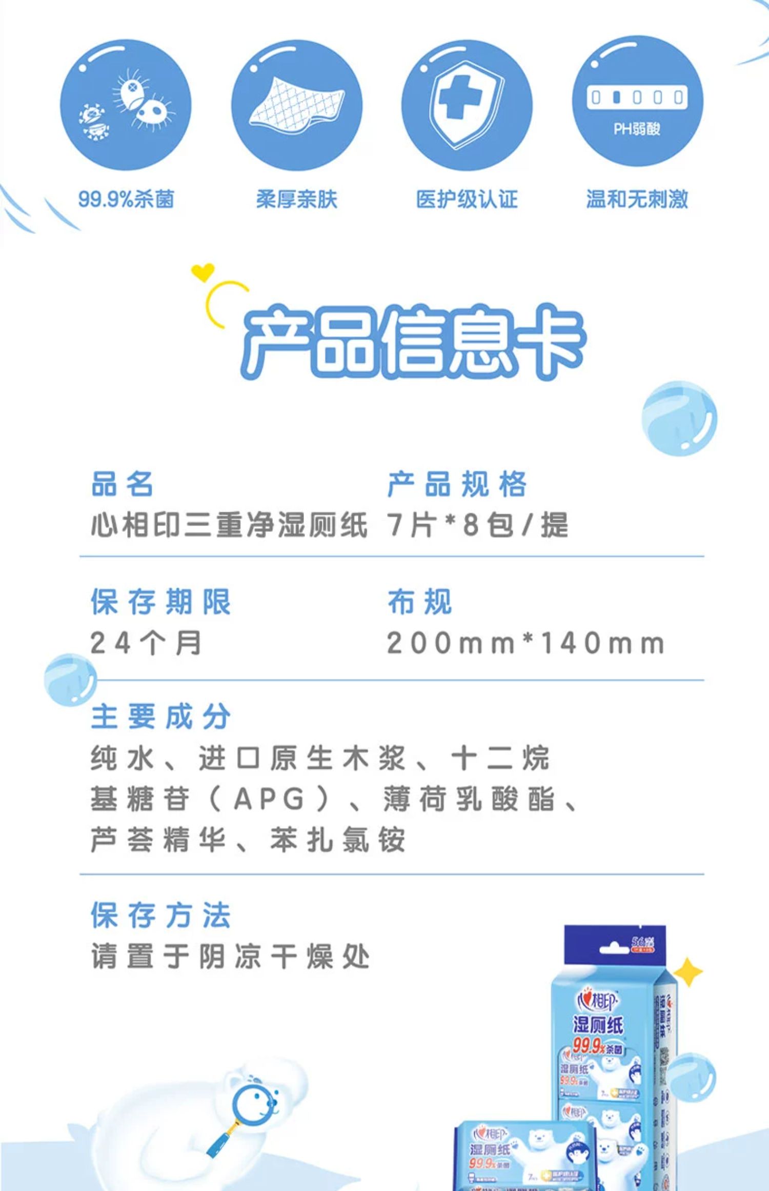 商品名称:3XCY007+P1(提装)心相印湿厕纸系列7片装湿巾8包组合装
