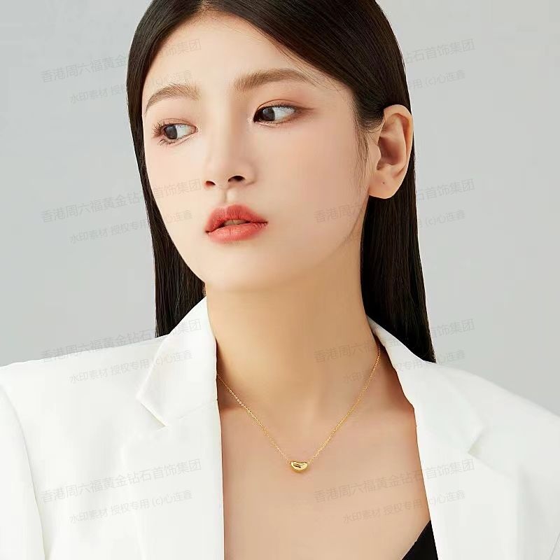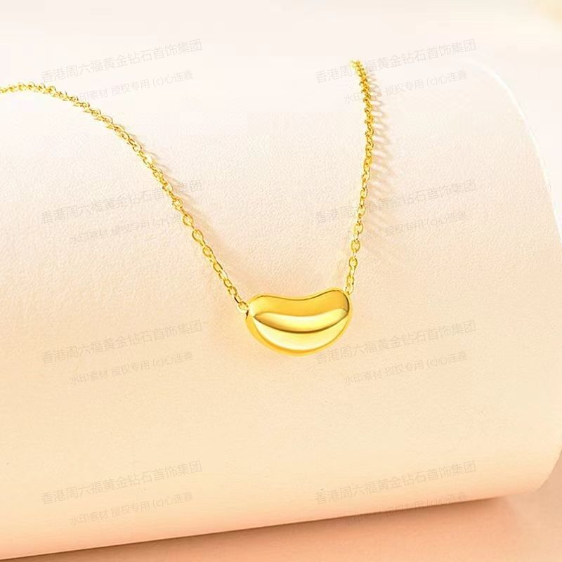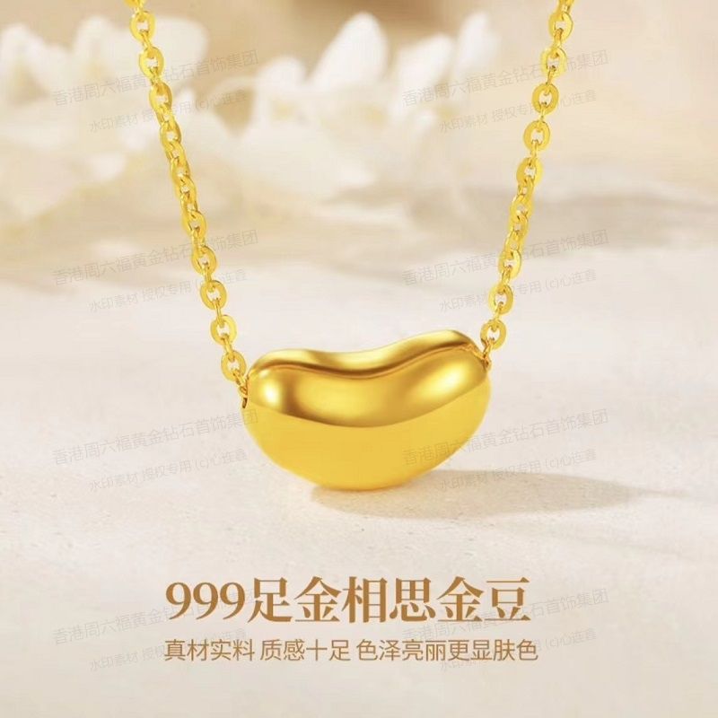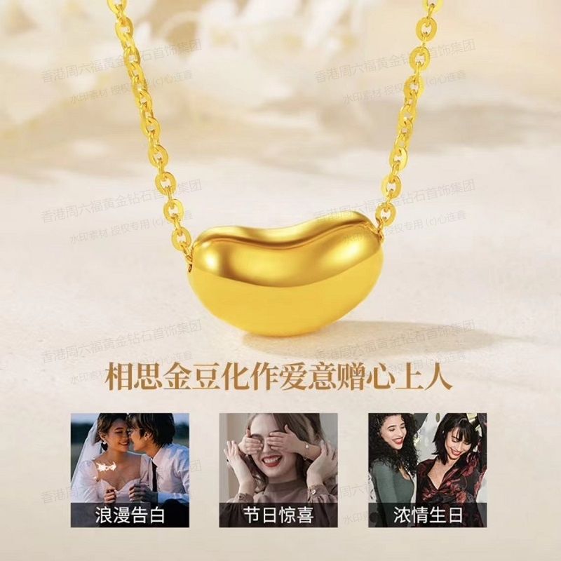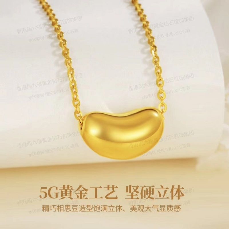 香港周六福黄金钻石首饰5D足金吊坠金豆(附赠K金项链)