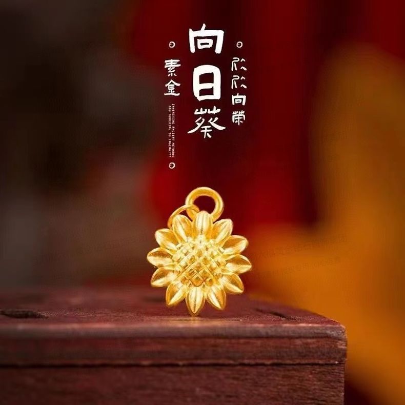 香港周六福黄金钻石首饰5D足金吊坠向日葵(附赠K金项链)