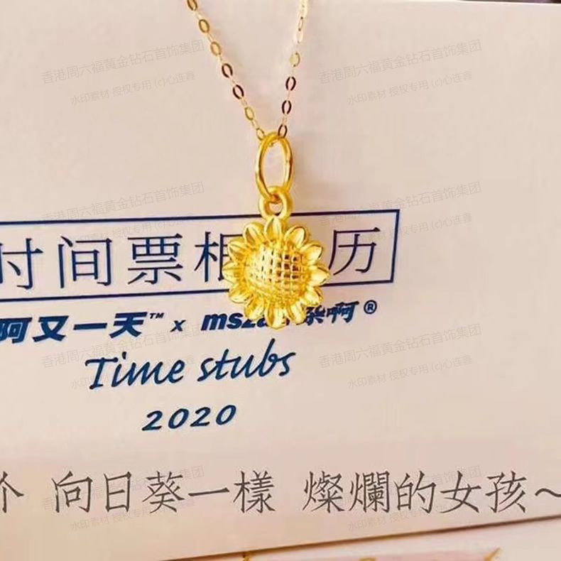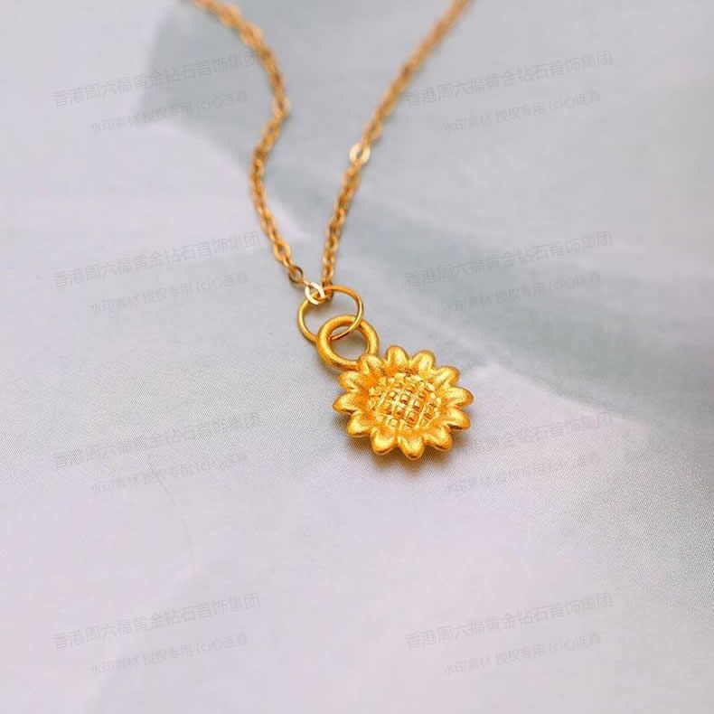 商品名称:香港周六福黄金钻石首饰5D足金吊坠向日葵(附赠K金项链)