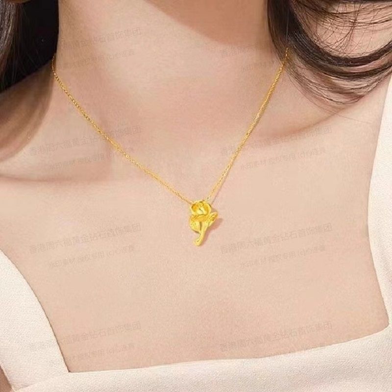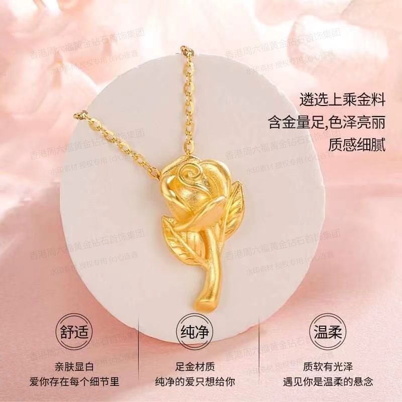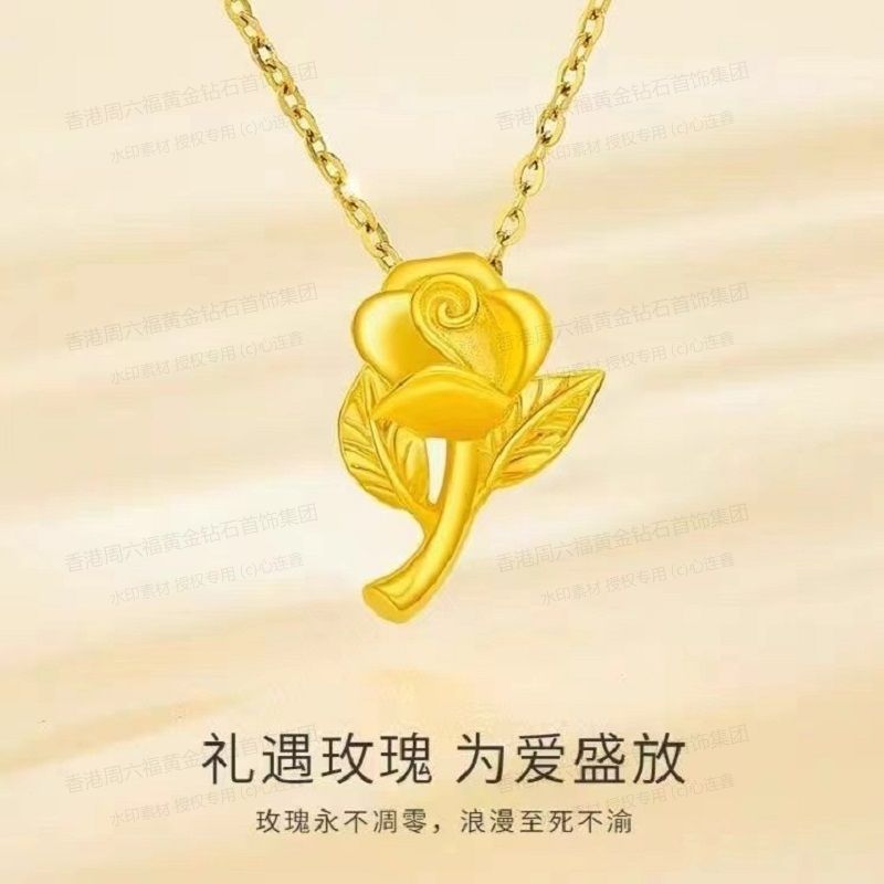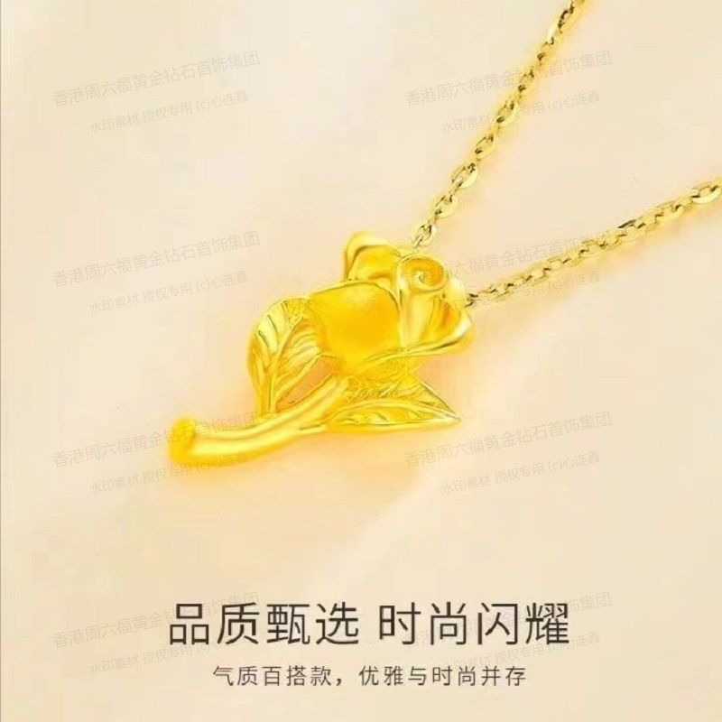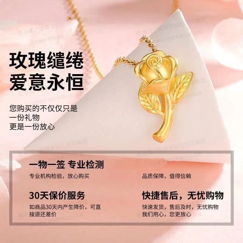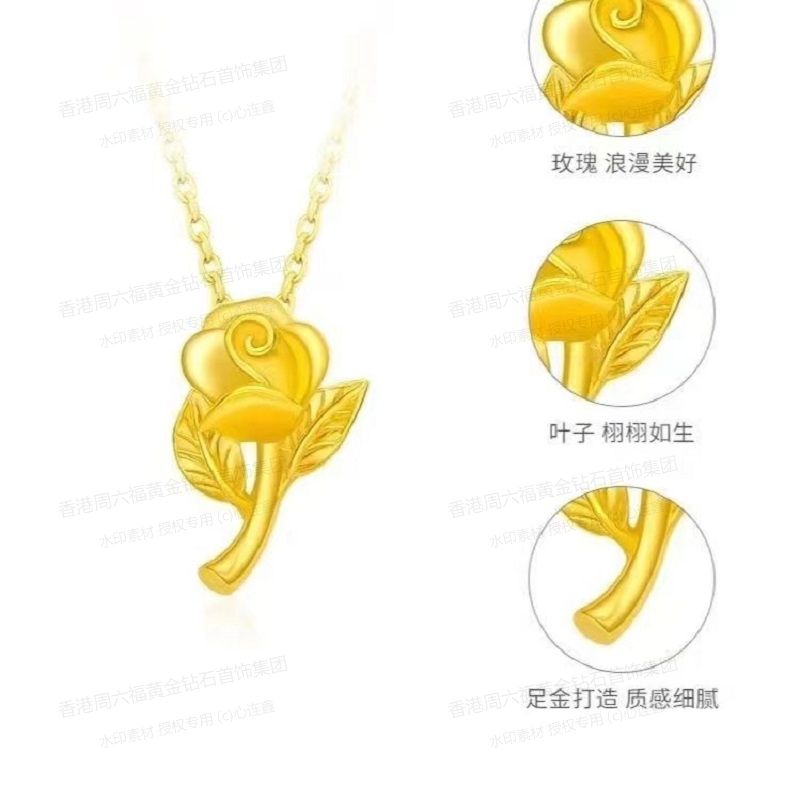商品名称:香港周六福黄金钻石首饰5D足金玫瑰花吊坠(附赠K金项链)