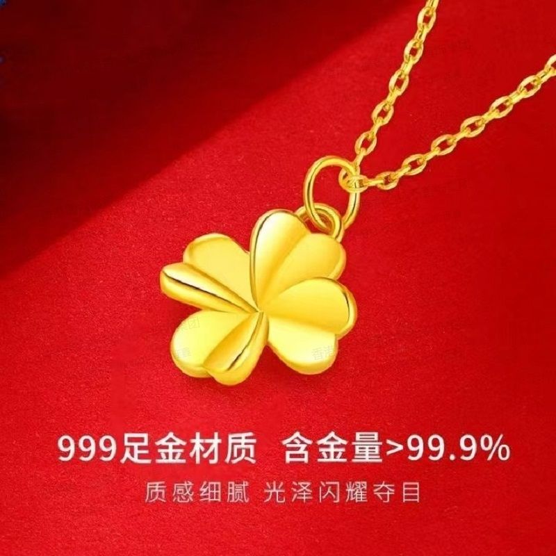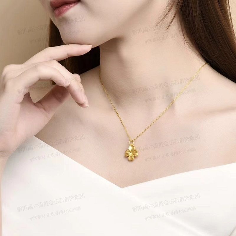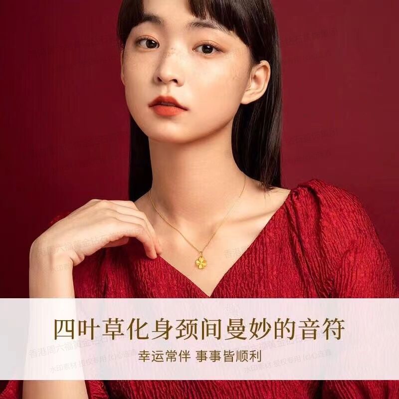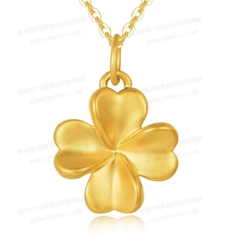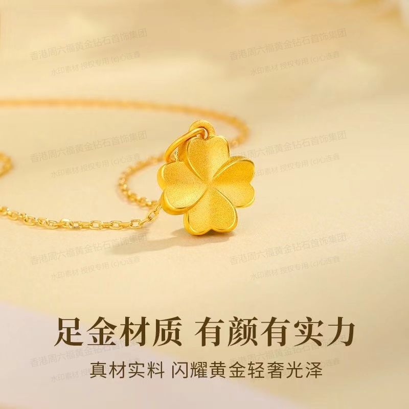 商品名称:香港周六福黄金钻石首饰5D足金吊坠四叶草(附赠K金项链)