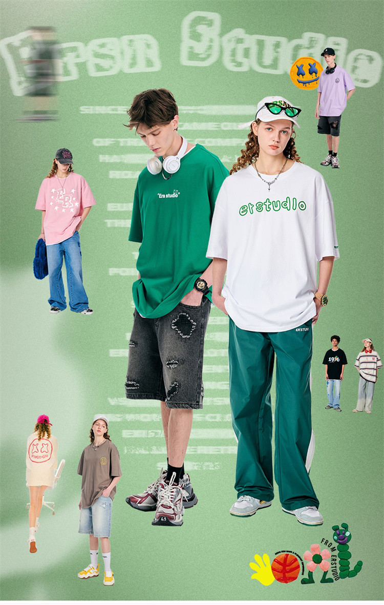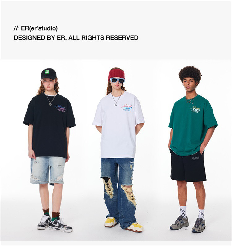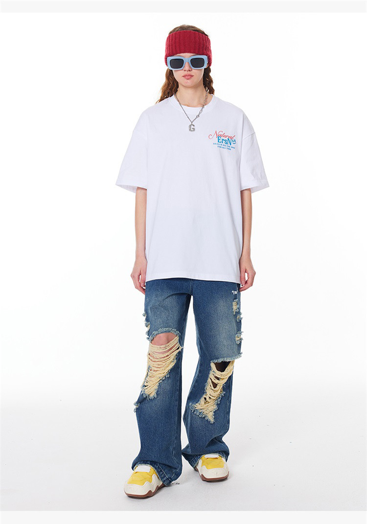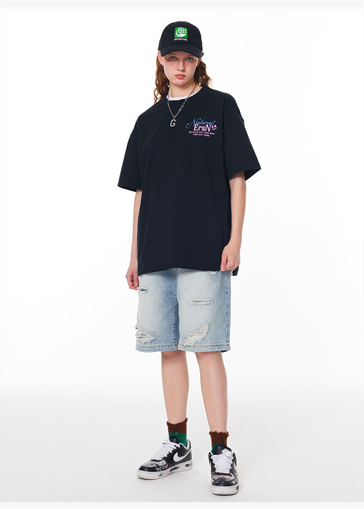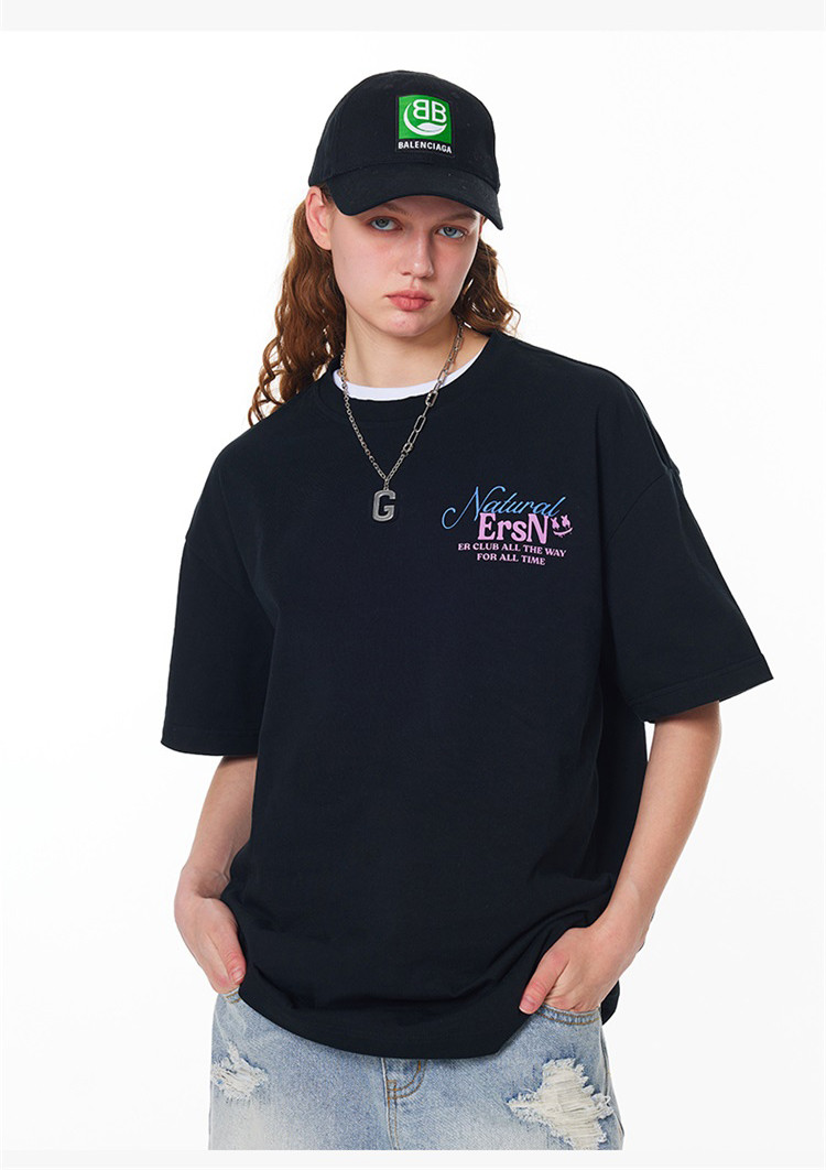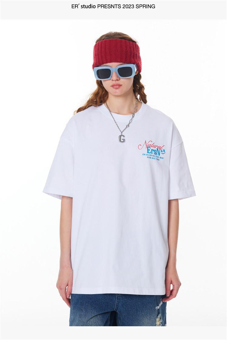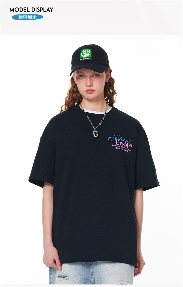 商品名称:【100%棉】基础简约字母短袖夏季潮牌宽松上衣圆领美式情侣T恤 490263