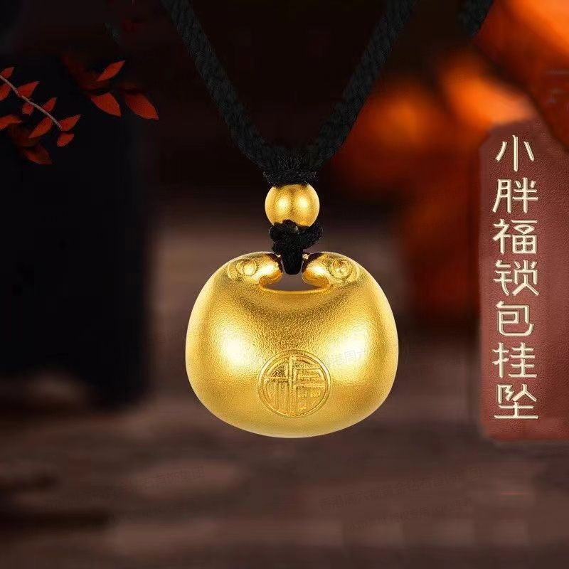 香港周六福黄金钻石首饰5D足金吊坠胖福[0.3克](附赠K金项链)