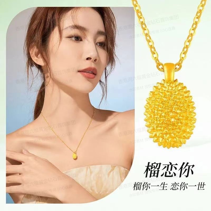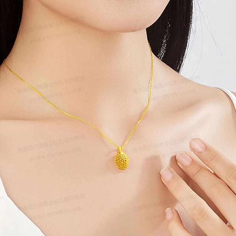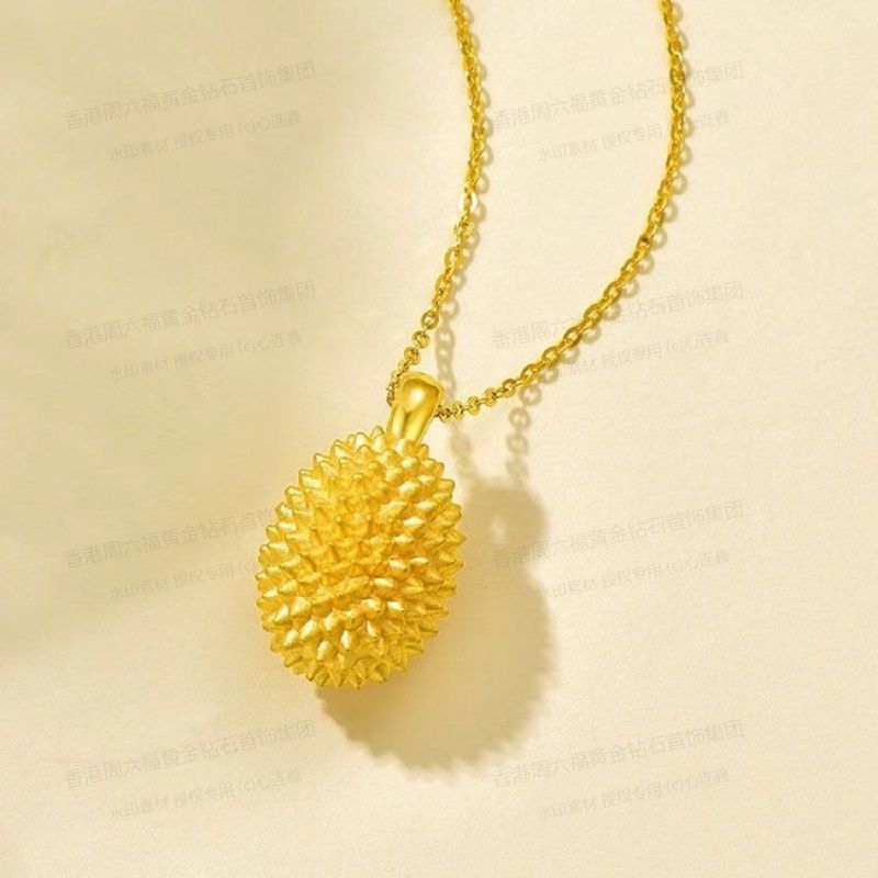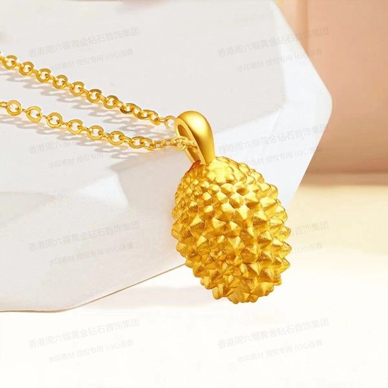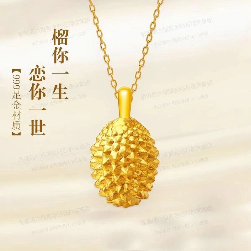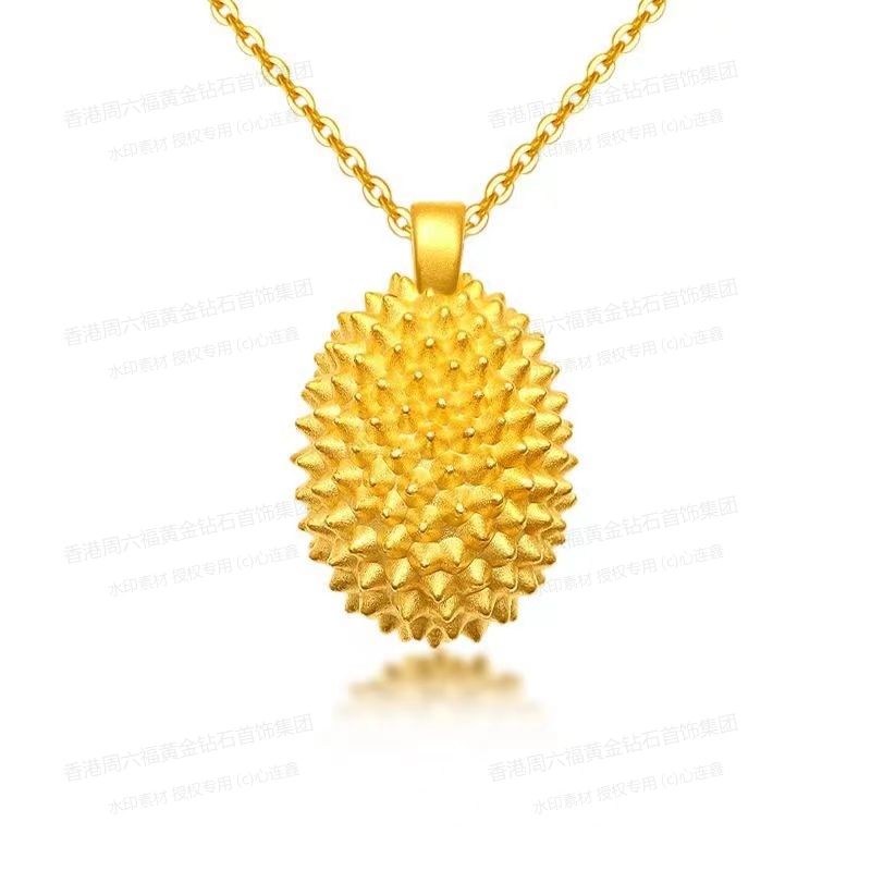 商品名称:香港周六福黄金钻石首饰5D足金吊坠小榴莲(附赠K金项链)