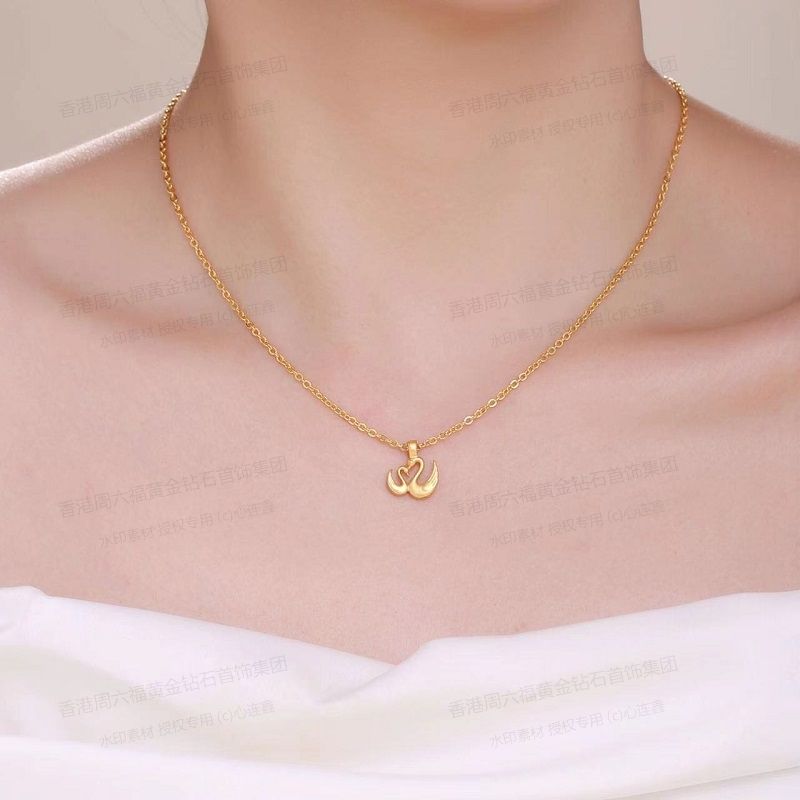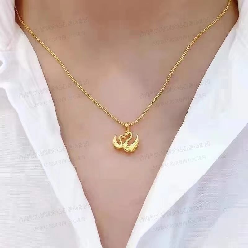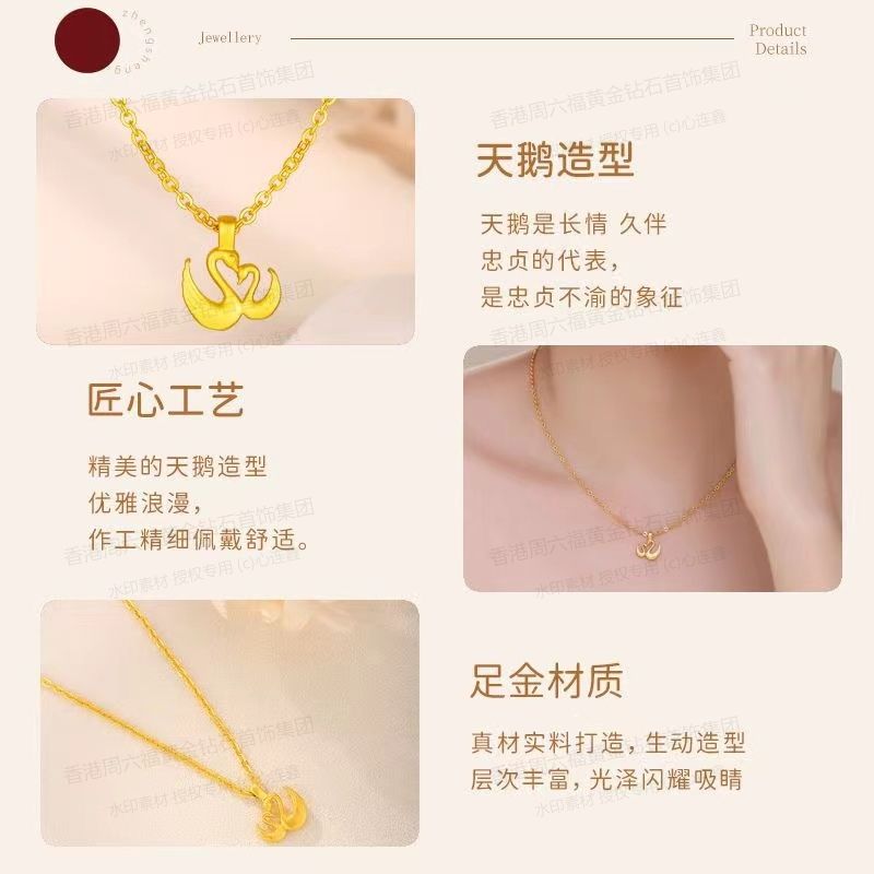 商品名称:香港周六福黄金钻石首饰5D足金吊坠天鹅(附赠K金项链)