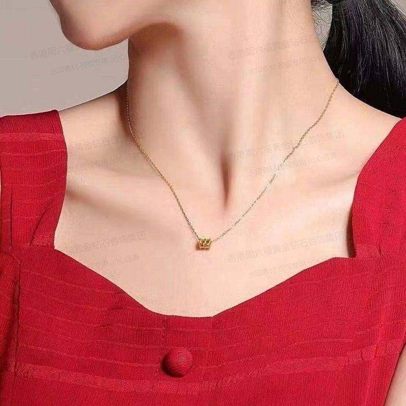 香港周六福黄金钻石首饰5D足金吊坠小蛮腰(附赠K金项链)