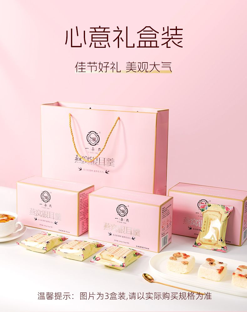 1)冻干燕窝银耳羹15g*7包*3盒2)500ml焖烧杯*1 3)精美礼品盒
