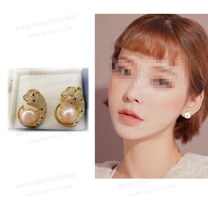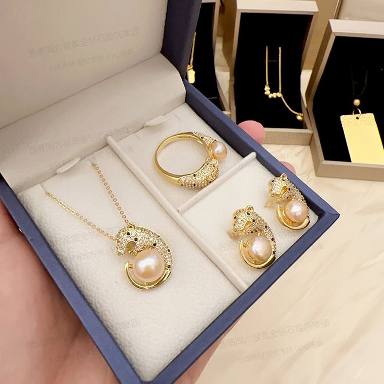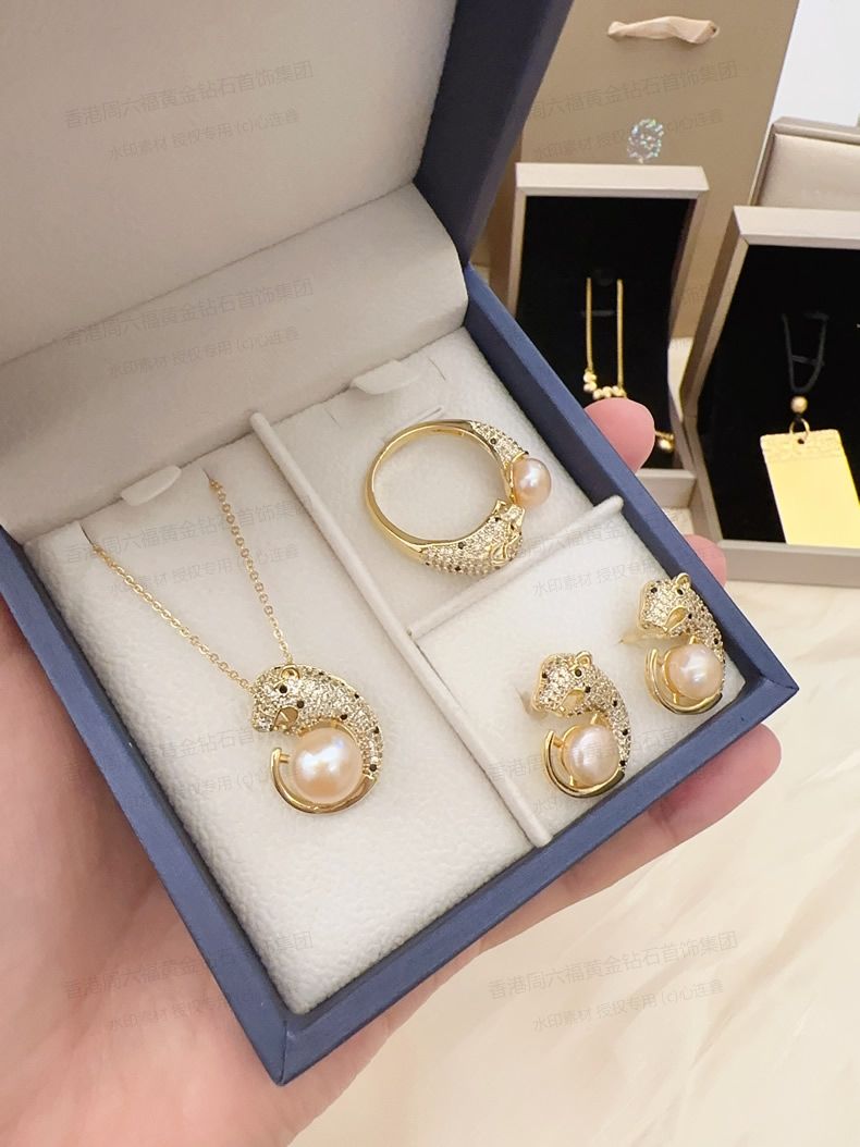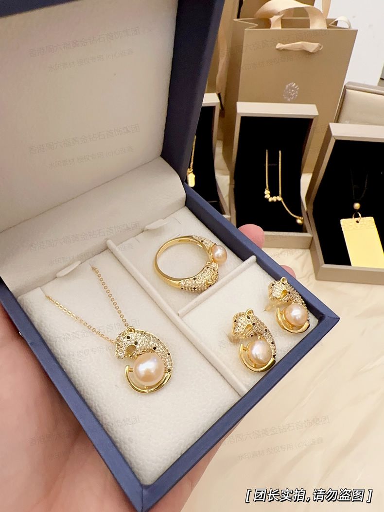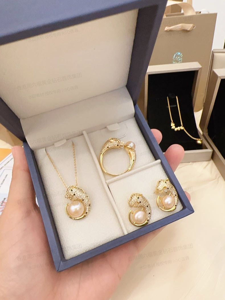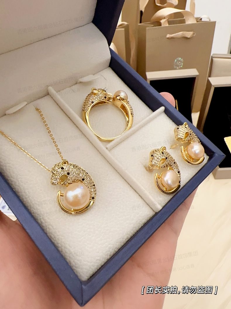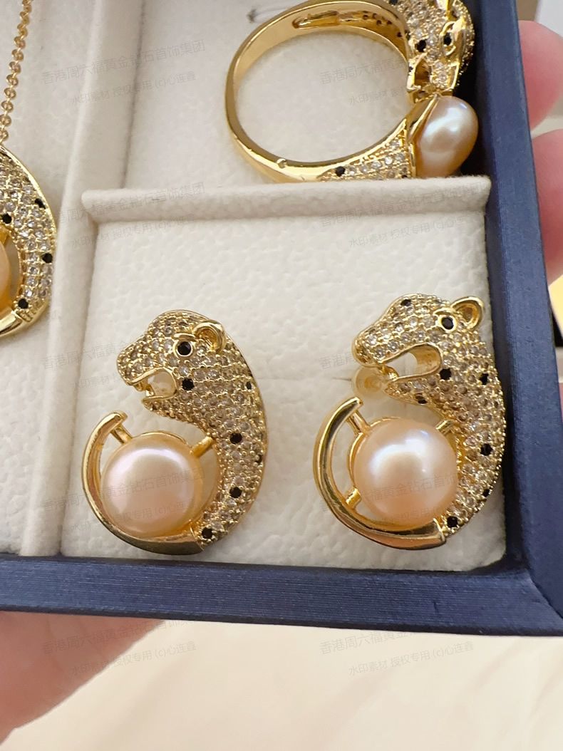 商品名称:香港周六福黄金钻石首饰K金满钻珍珠猎豹套装