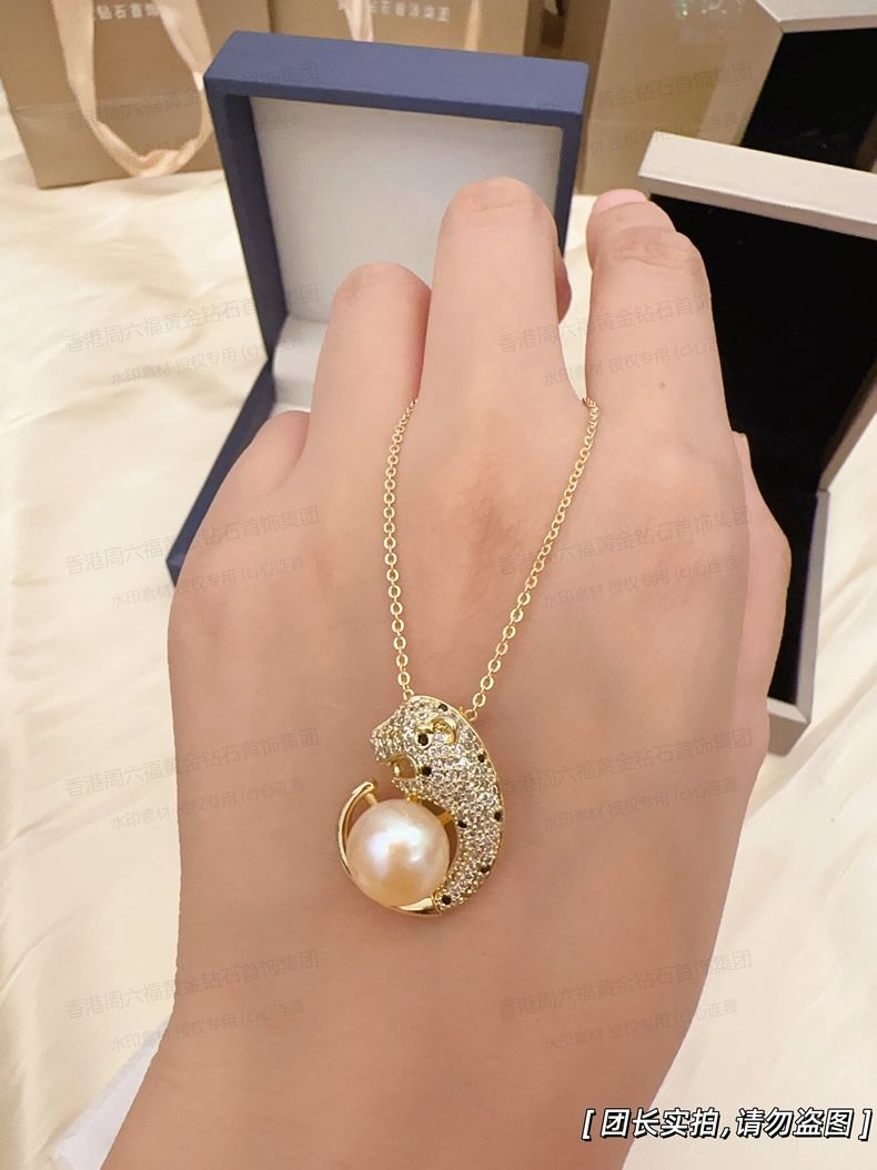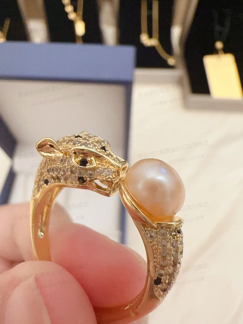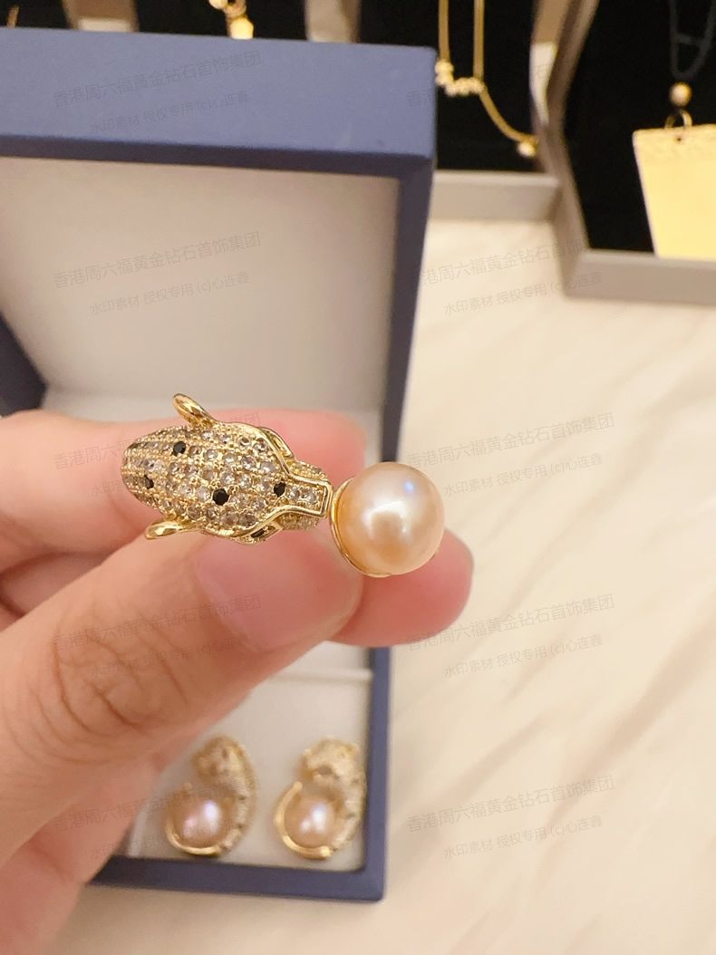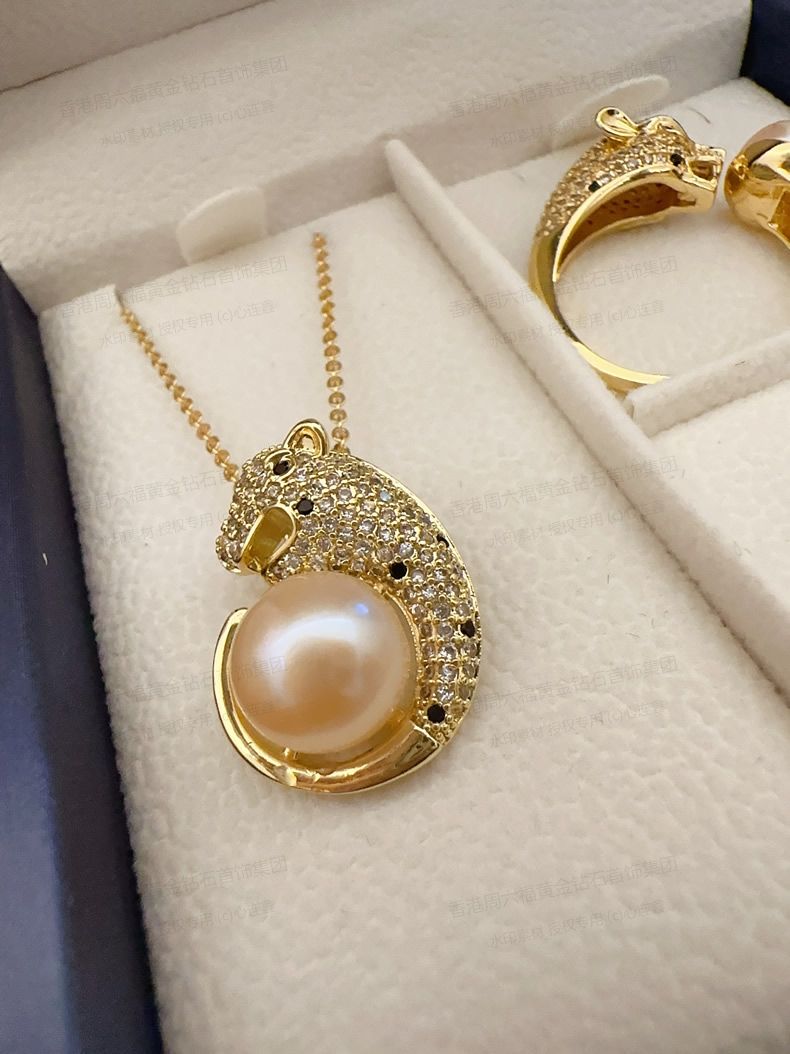 香港周六福黄金钻石首饰K金满钻珍珠猎豹套装