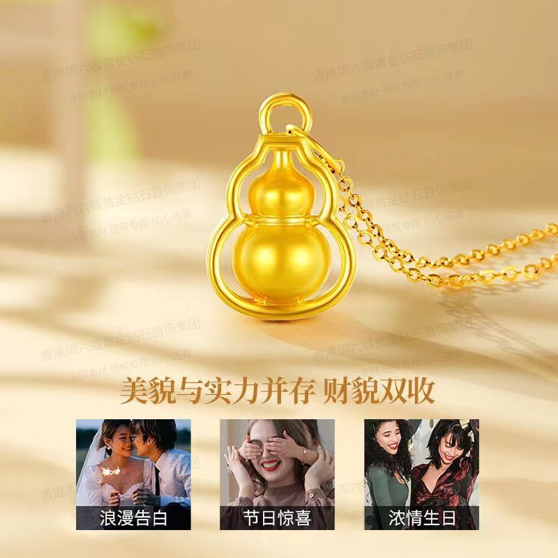 香港周六福黄金钻石首饰5D足金吊坠葫芦(附赠K金项链)