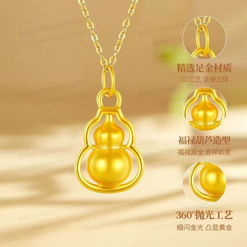 商品名称:香港周六福黄金钻石首饰5D足金吊坠葫芦(附赠K金项链)