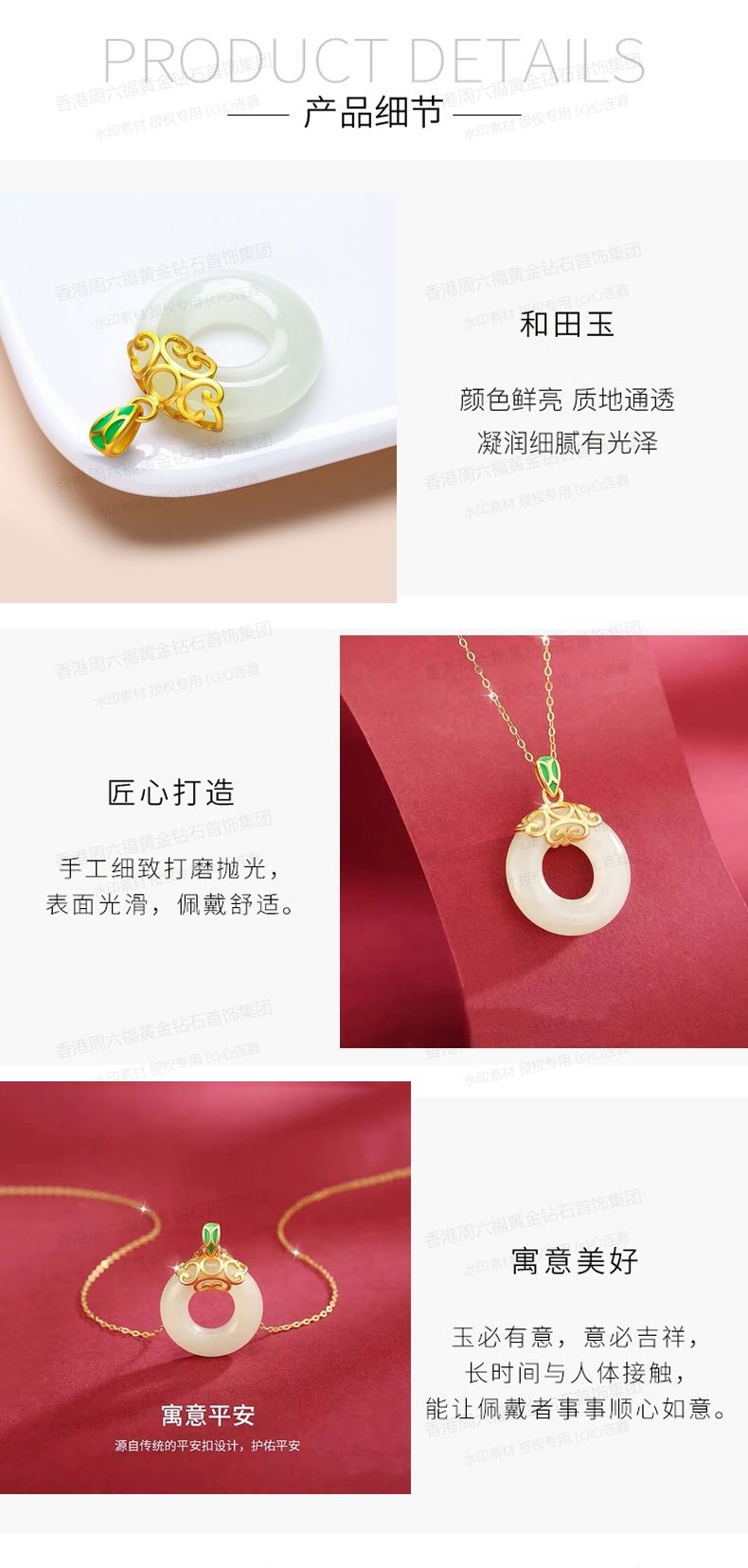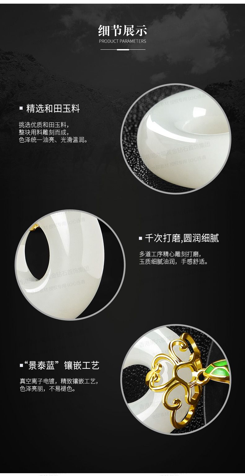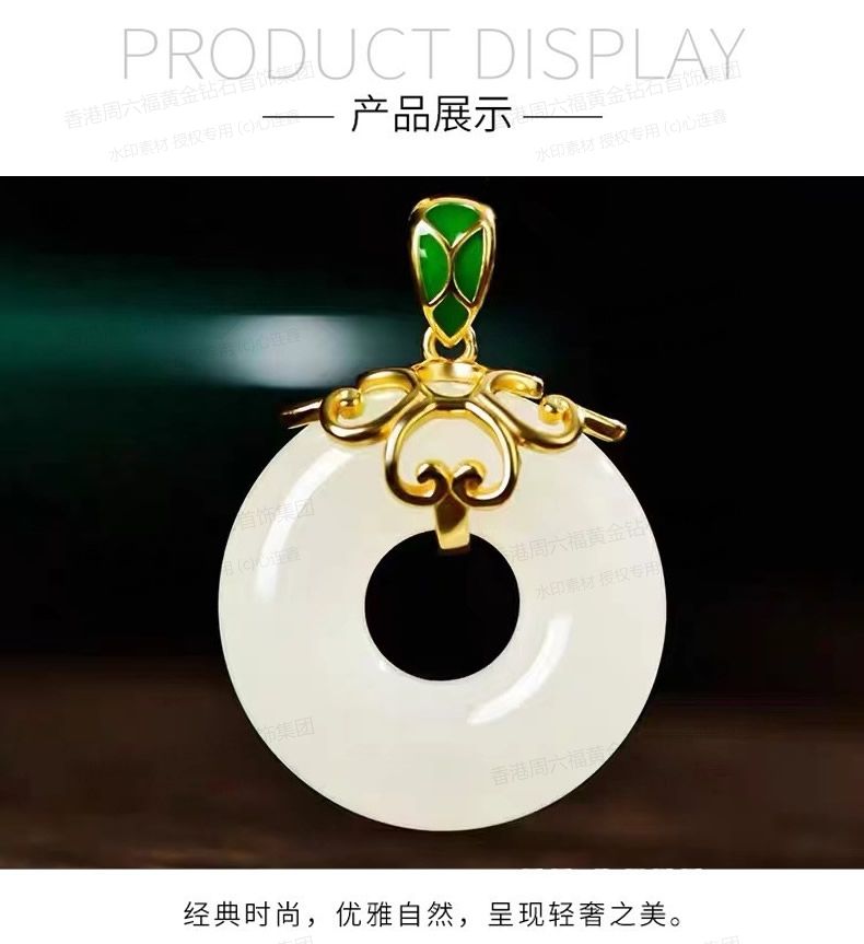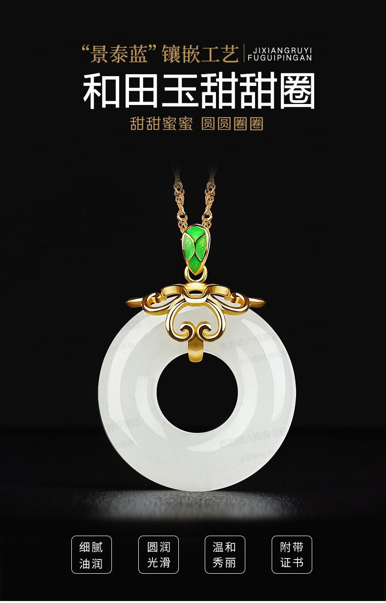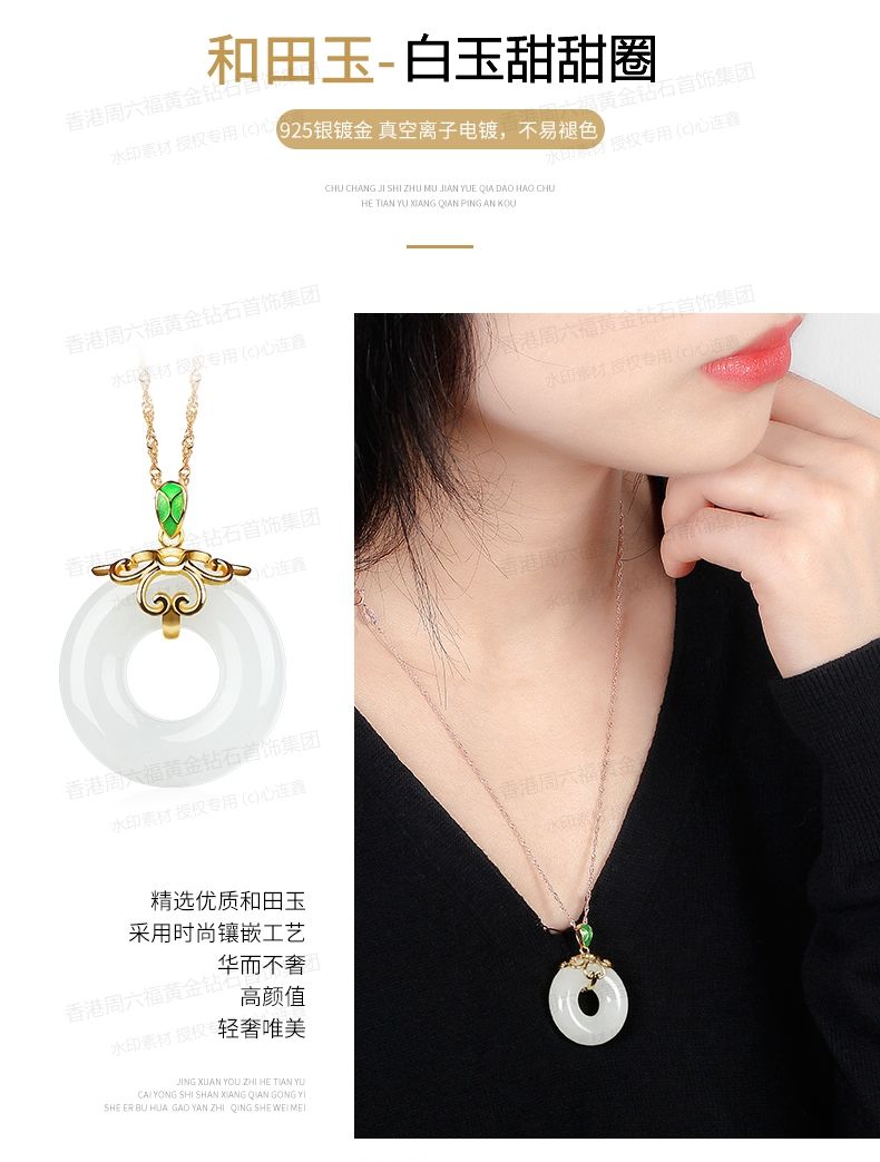 商品名称:香港周六福黄金钻石首饰古法银镶嵌和田玉-甜甜圈
