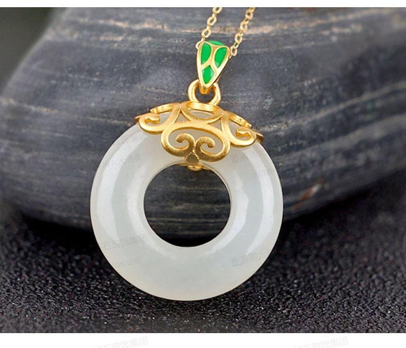 香港周六福黄金钻石首饰古法银镶嵌和田玉-甜甜圈
