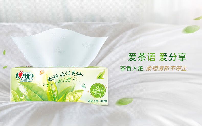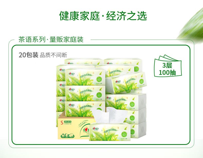 DT20100(箱装)心相印茶语经典100抽20包装三层塑装纸面巾