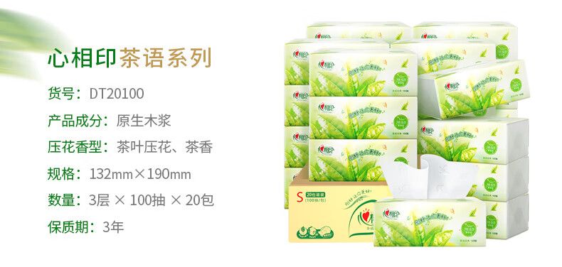 商品名称:DT20100(箱装)心相印茶语经典100抽20包装三层塑装纸面巾