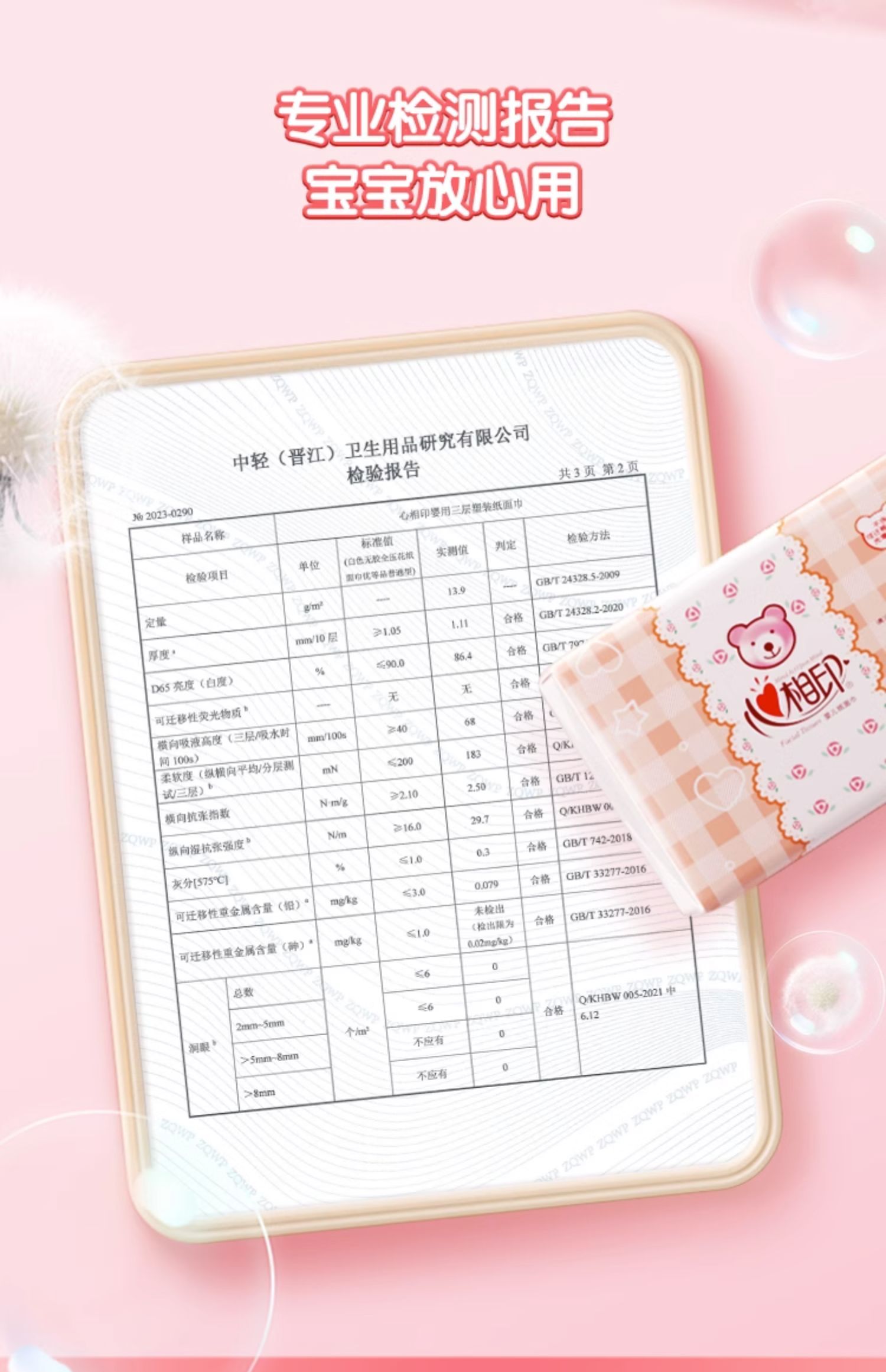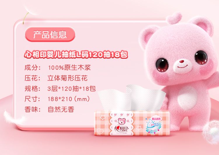 商品名称:DT1120(箱装)心相印婴用型系列120抽三层塑装纸面18包(L码)