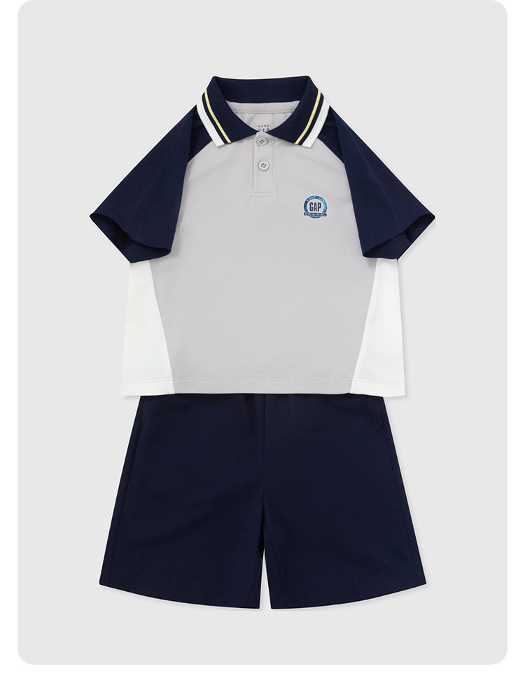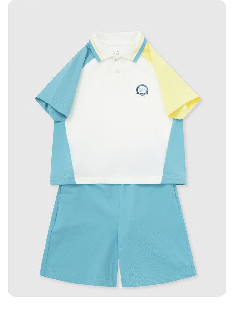 Gap男童2024春秋季撞色polo领短袖T恤短裤运动套装儿童装466033 811546