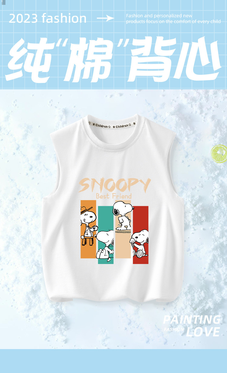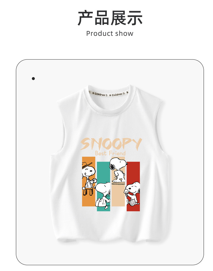 商品名称:男童背心夏季2025儿童夏装薄款上衣纯棉无袖T恤白色中大童装 713951