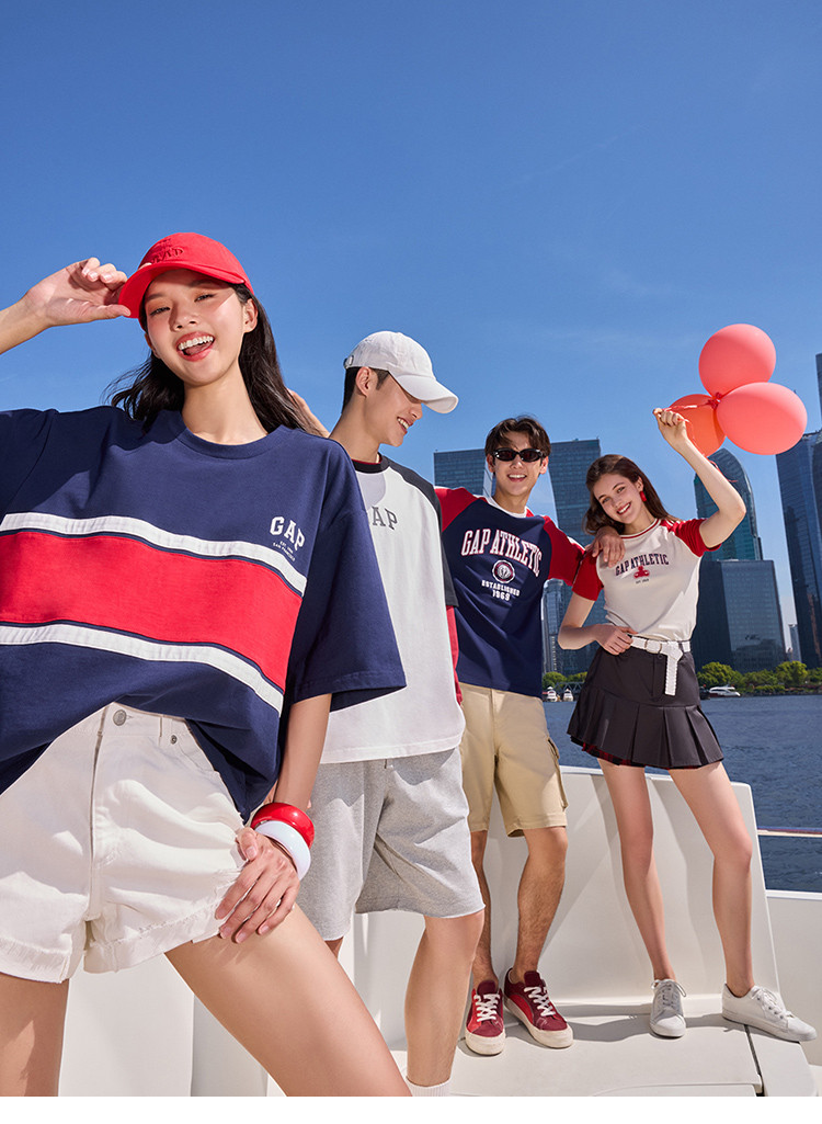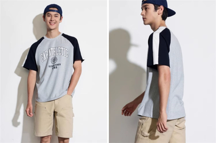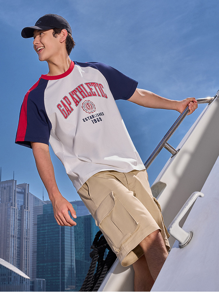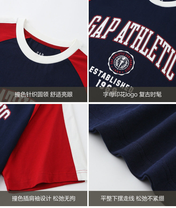 Gap男女装夏季纯棉logo撞色插肩短袖T恤宽松上衣465581 896858