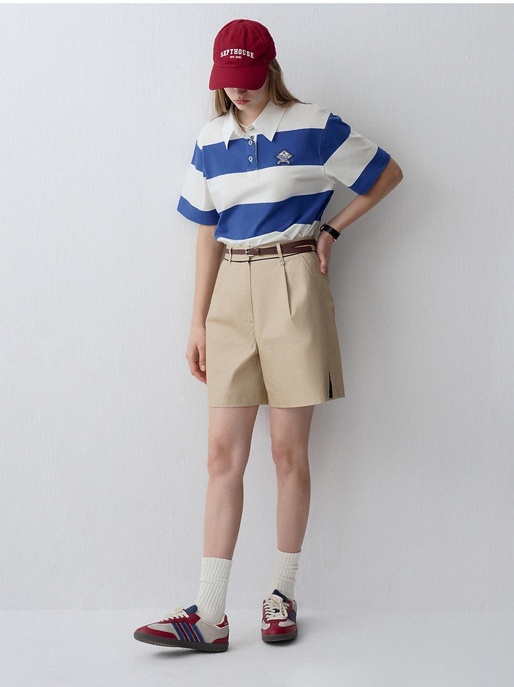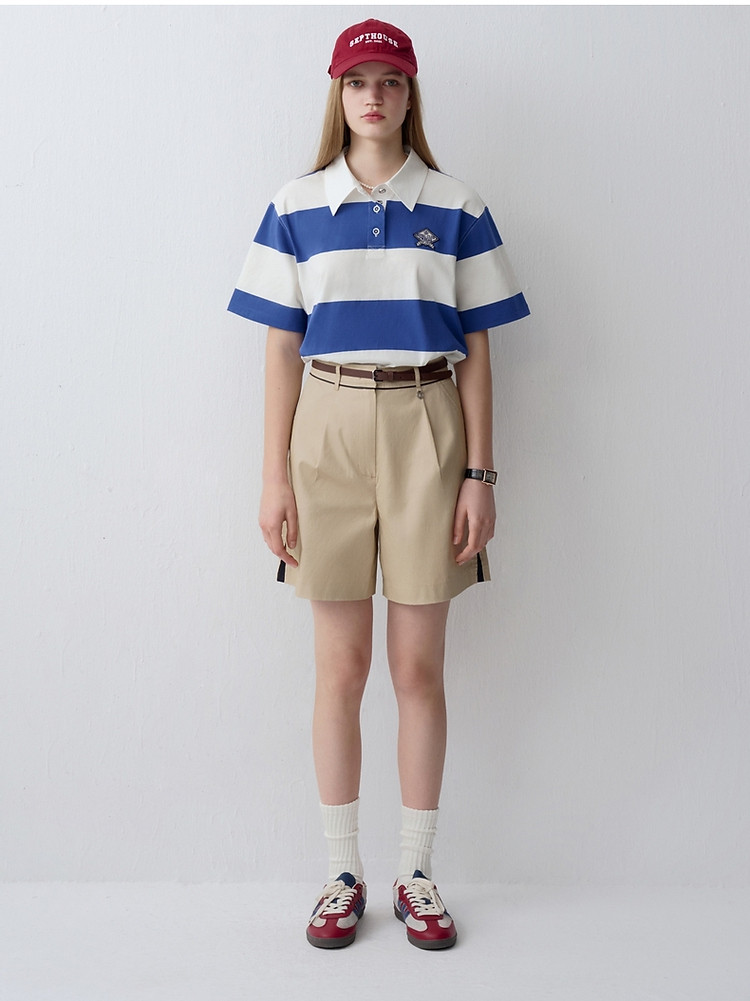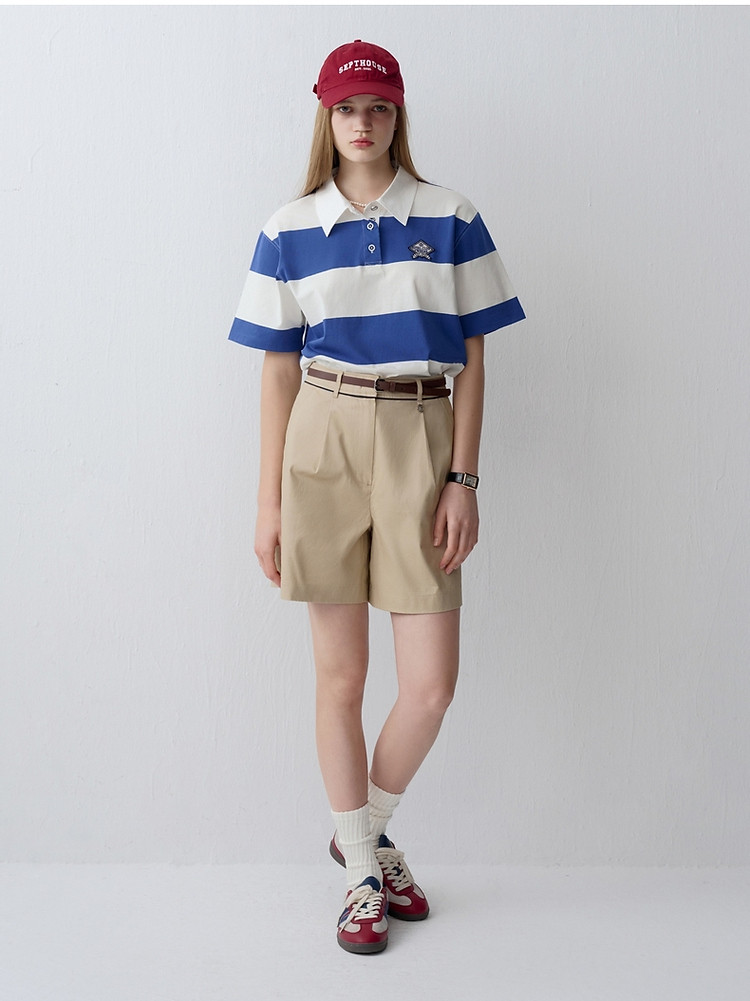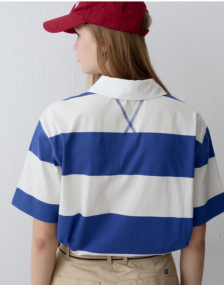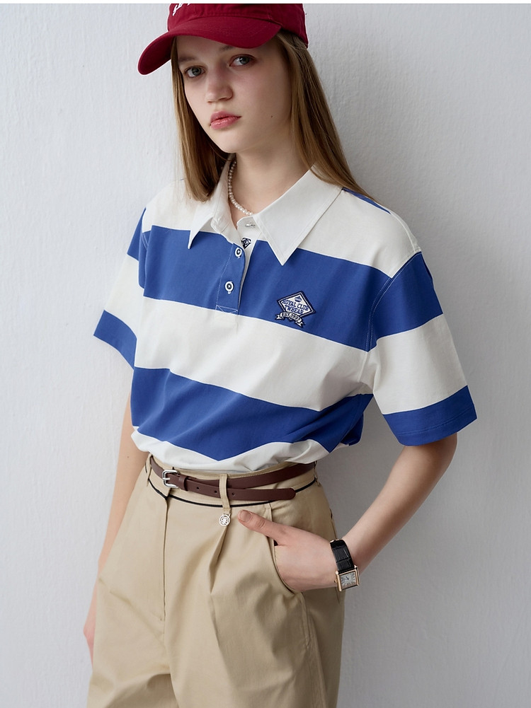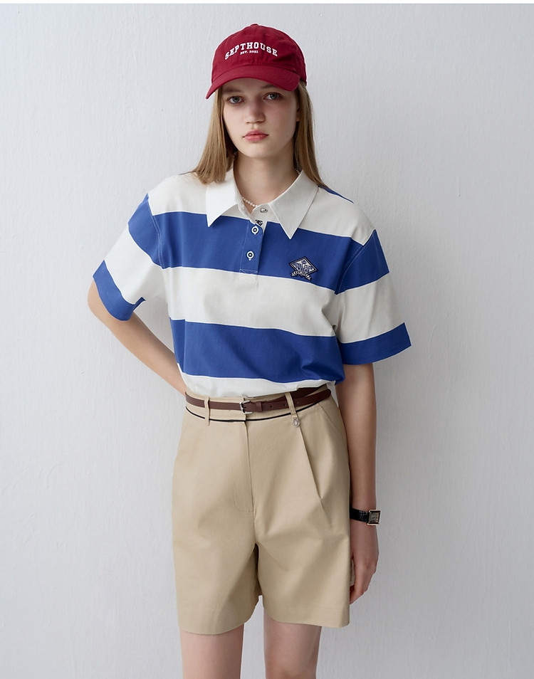 商品名称:小熊女装时尚宽条纹POLO衫学院风短袖T恤 716609