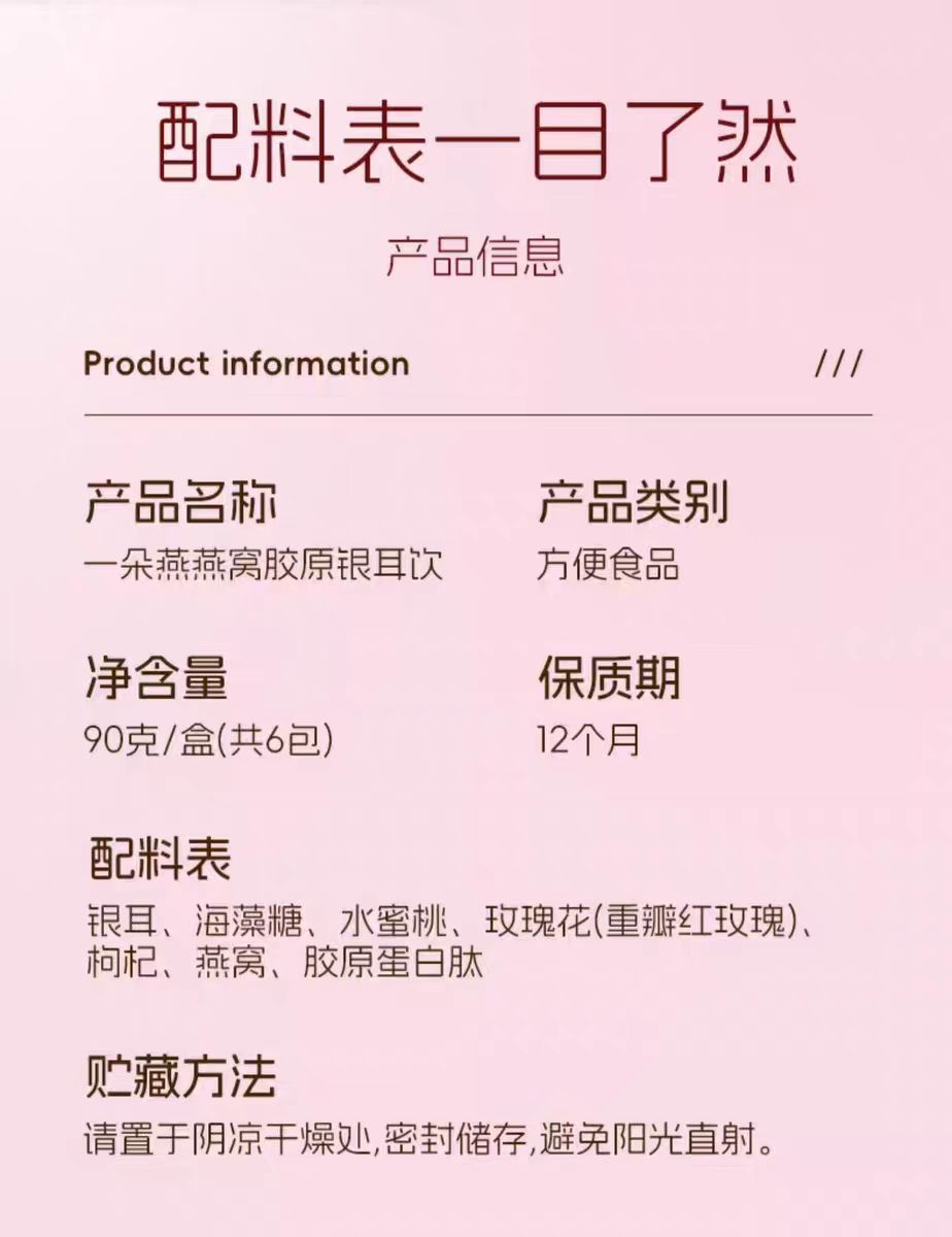 商品名称:官方正品一朵燕燕窝胶原蛋白肽即食孕妇营养滋补鲜泡燕窝饮银耳羹礼盒