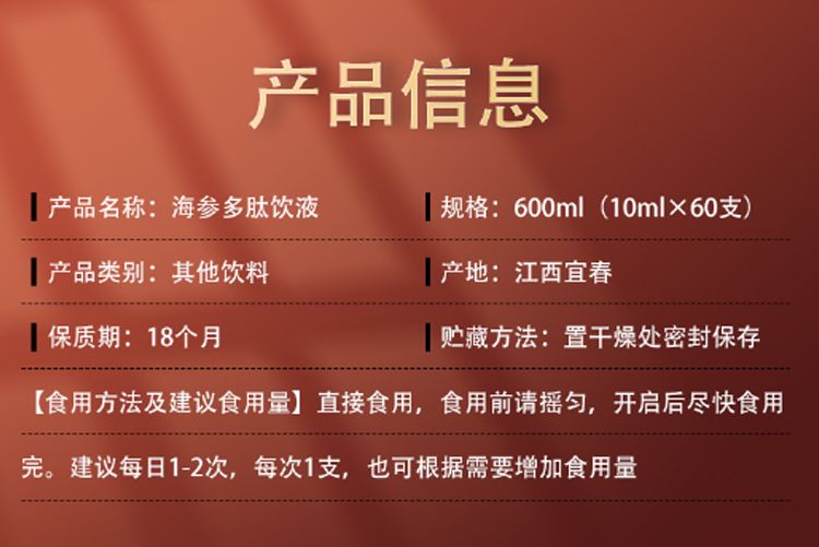 商品名称:海参多肽饮品小分子活性肽海参口服液即食海参中老年营养饮液过节送礼