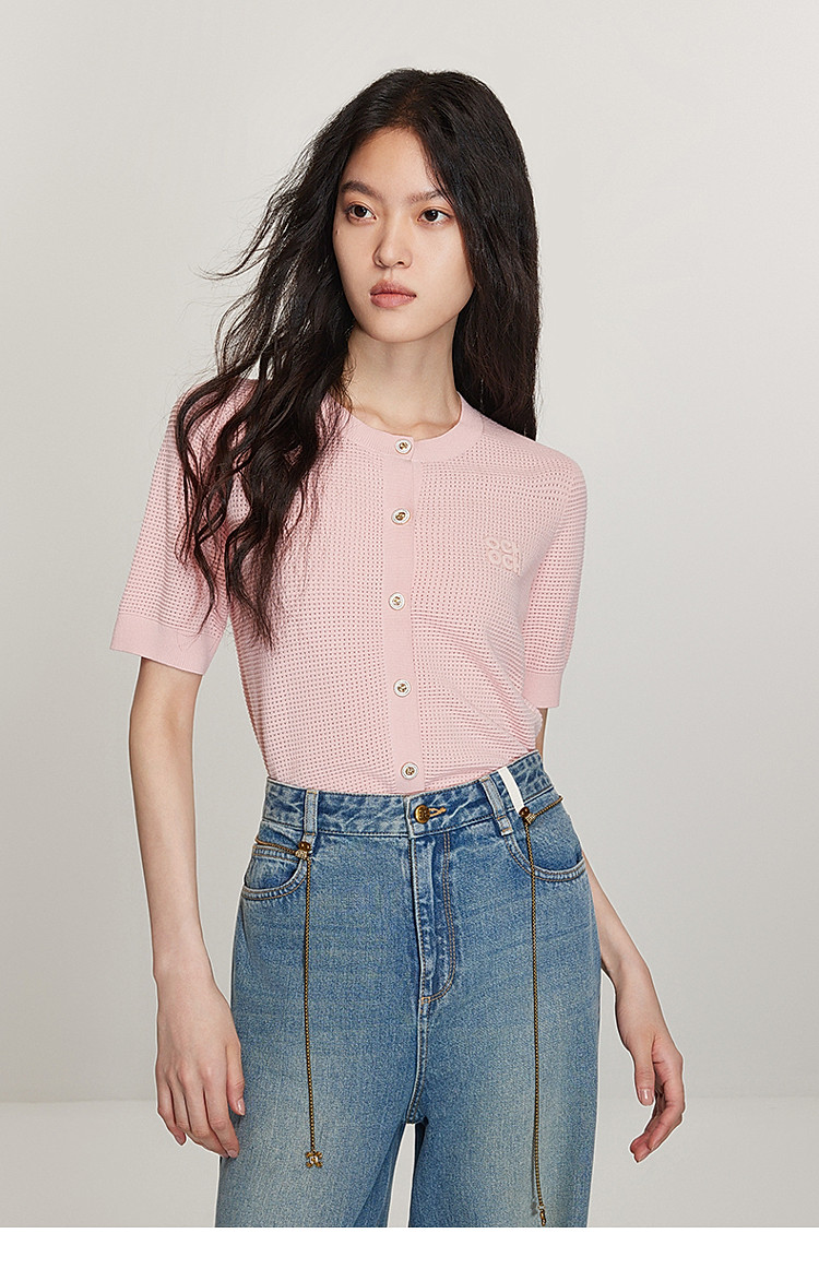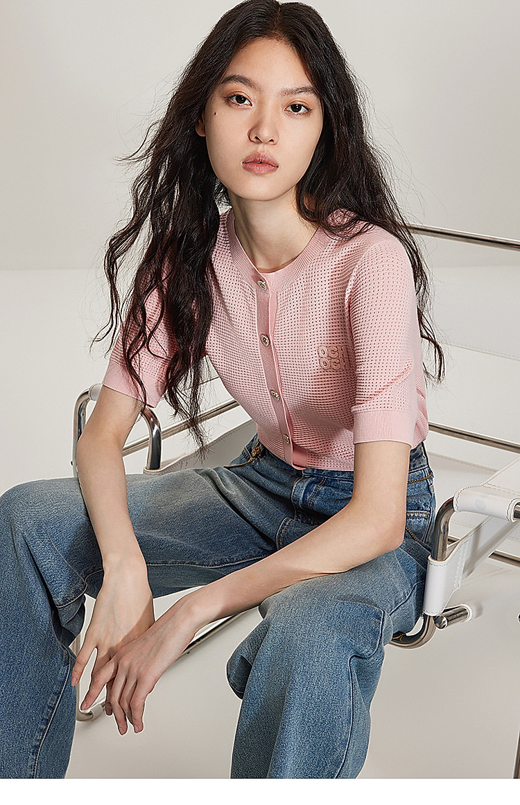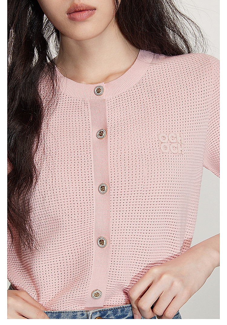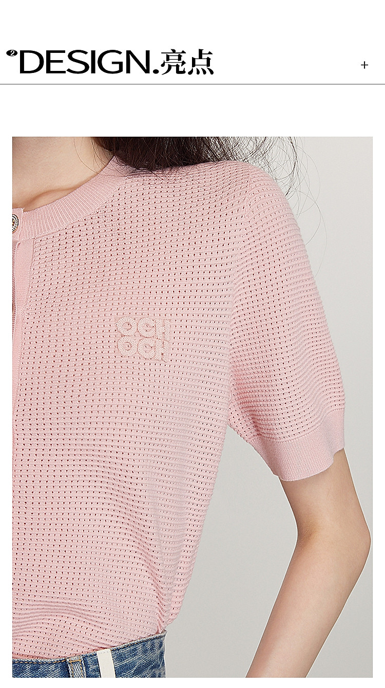 春装 氧气衫小香短袖针织外套女凉爽透气 622223