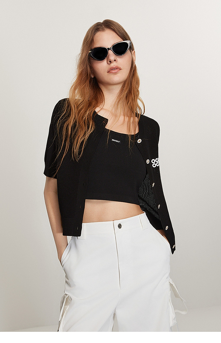 商品名称:春装 氧气衫小香短袖针织外套女凉爽透气 622223