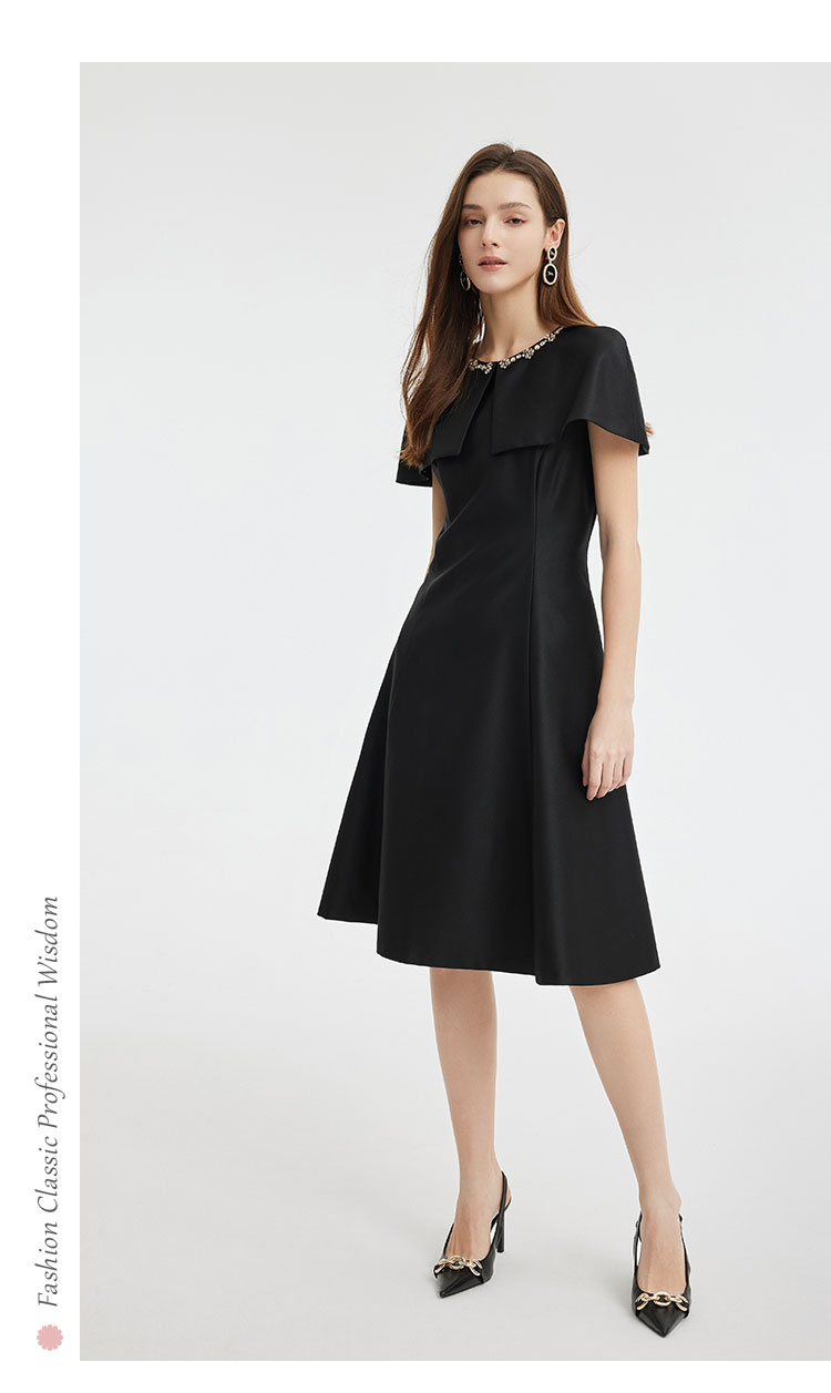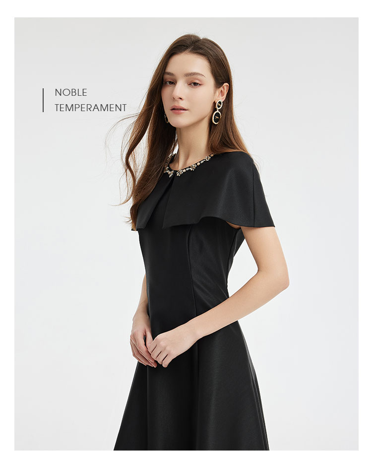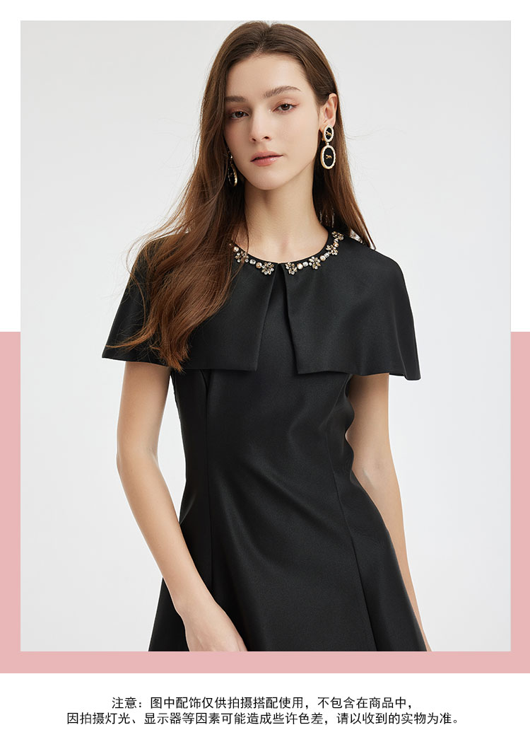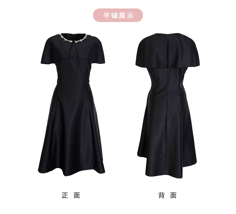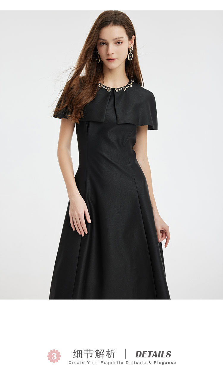 商品名称:斗篷式镶钻礼服宴会连衣裙高贵遮手臂肉肉显瘦显高面料柔软 230303