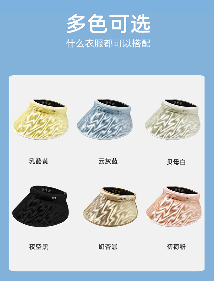 商品名称:2025春夏大帽檐防晒帽女款泡芙帽防紫外线遮阳空顶帽子 933901