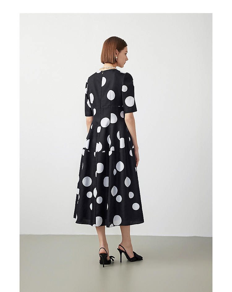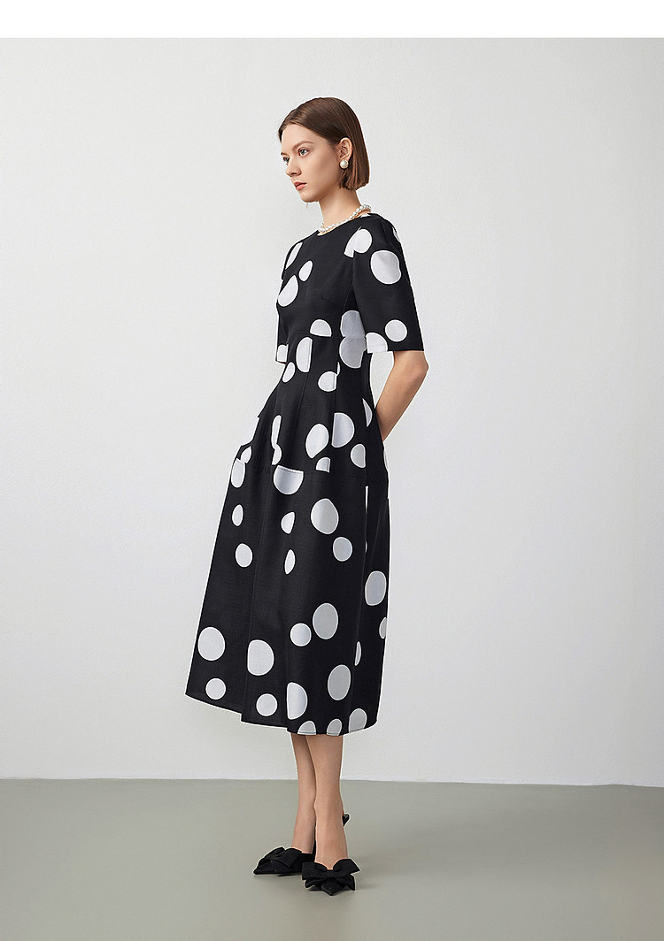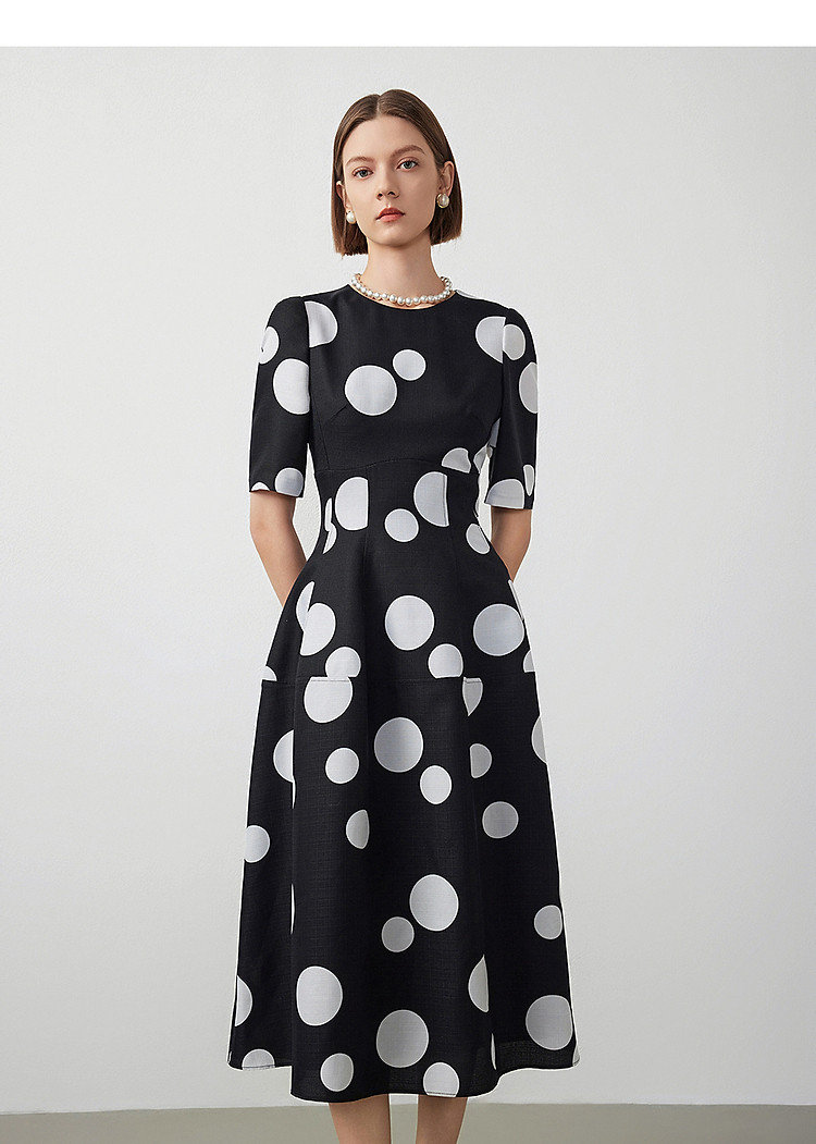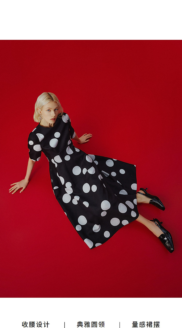 法式赫本风高腰波点裙女春秋款收腰显瘦连衣裙经典系列 928153