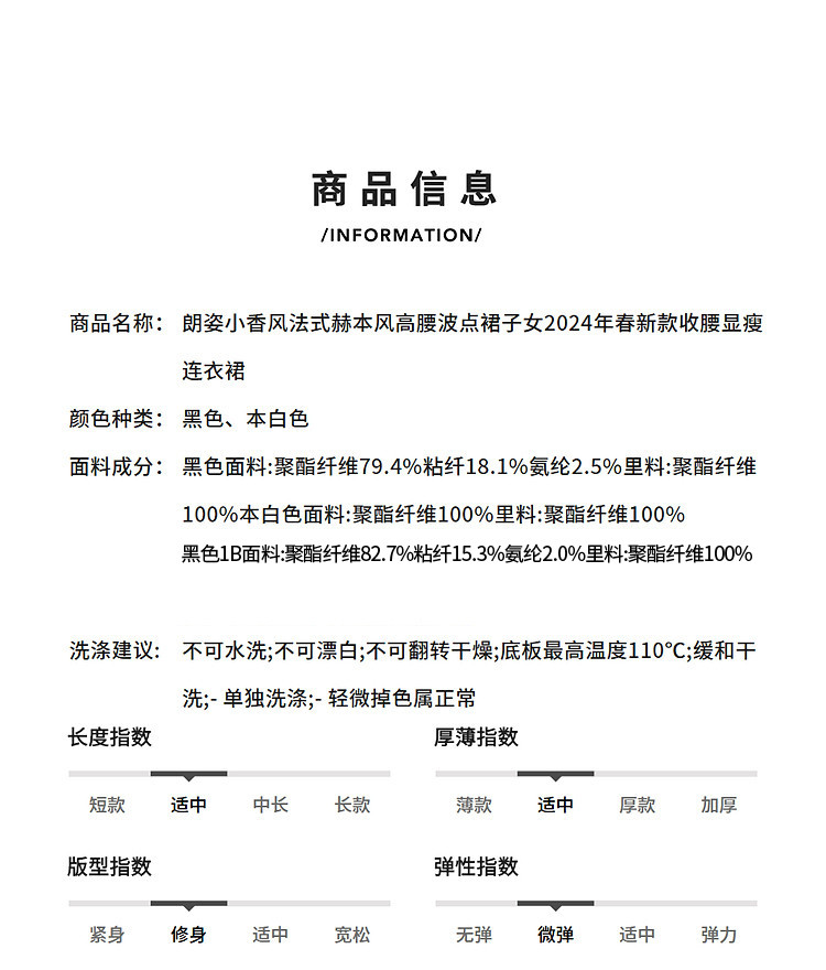 商品名称:法式赫本风高腰波点裙女春秋款收腰显瘦连衣裙经典系列 928153