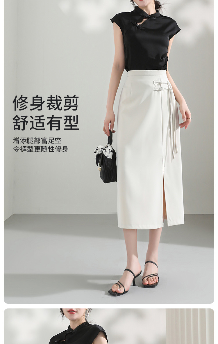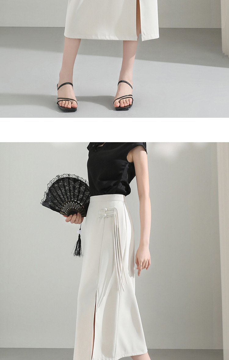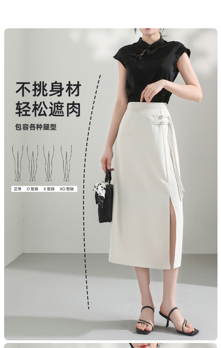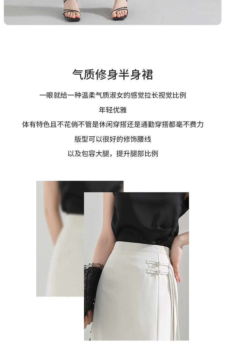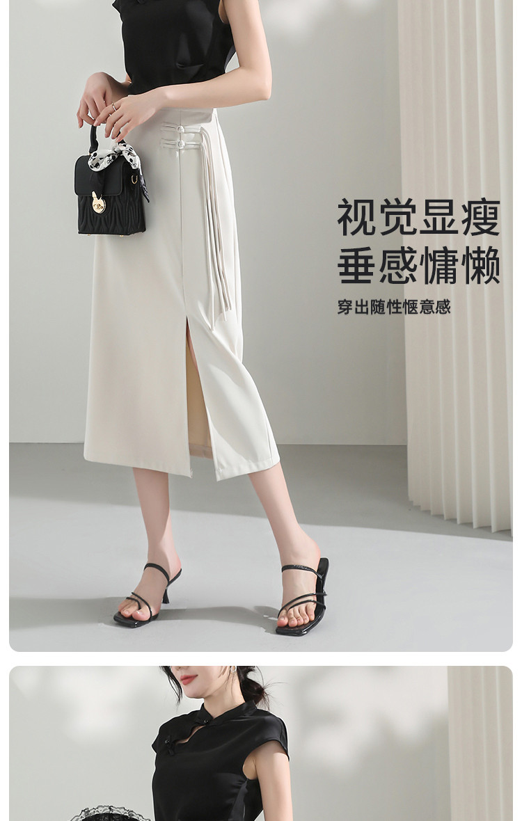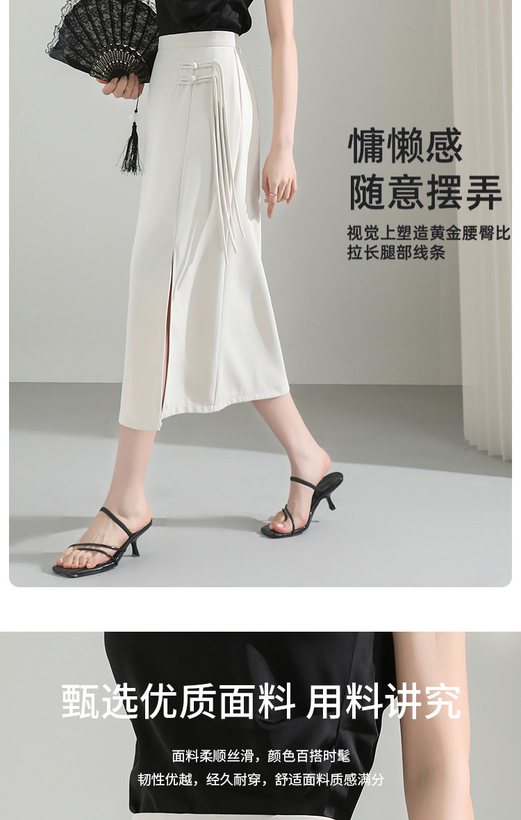 商品名称:夏季薄款新中式国风盘口流苏开叉设计半身裙时尚百搭通勤休闲长裙 440031