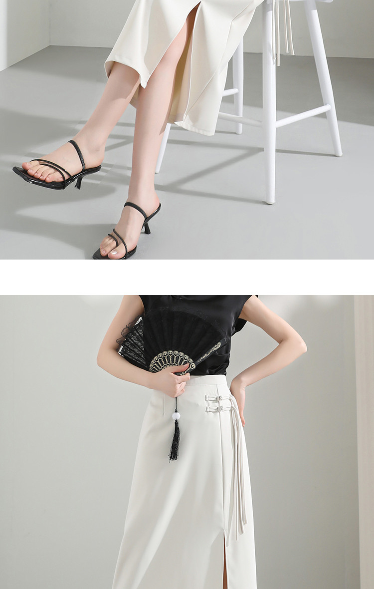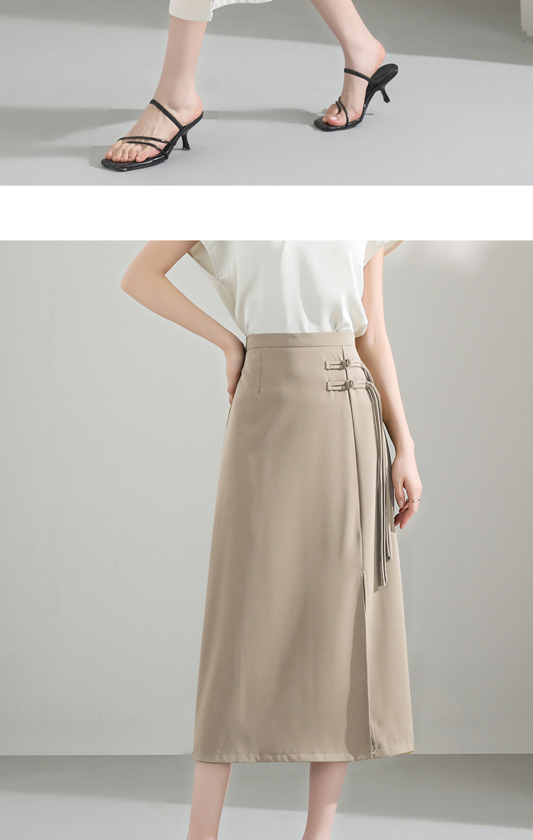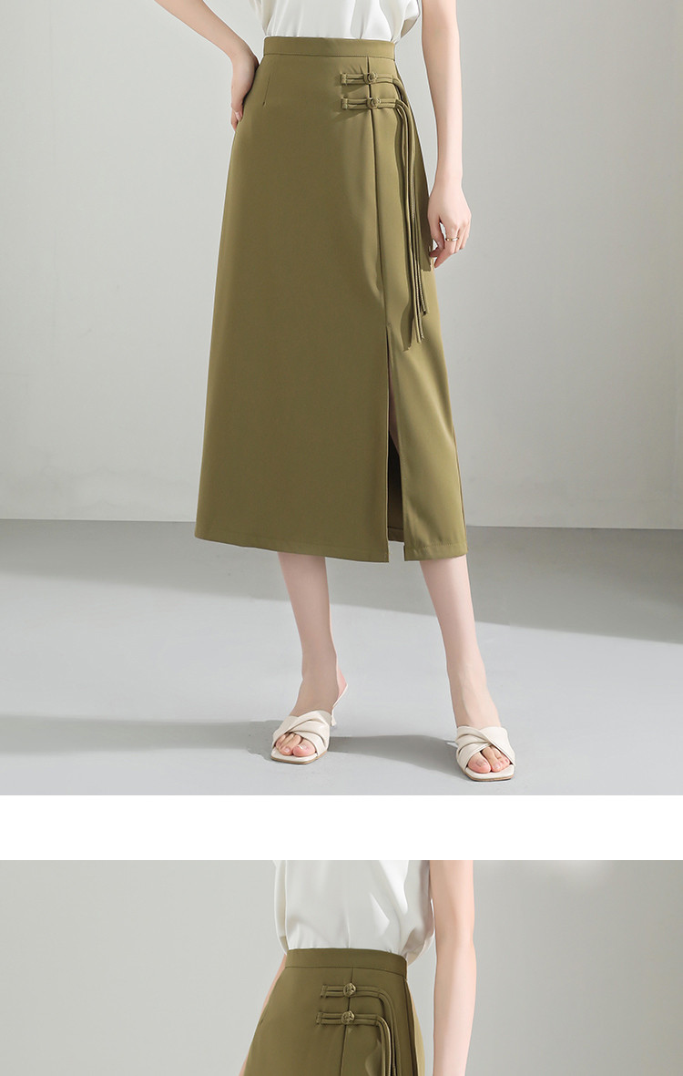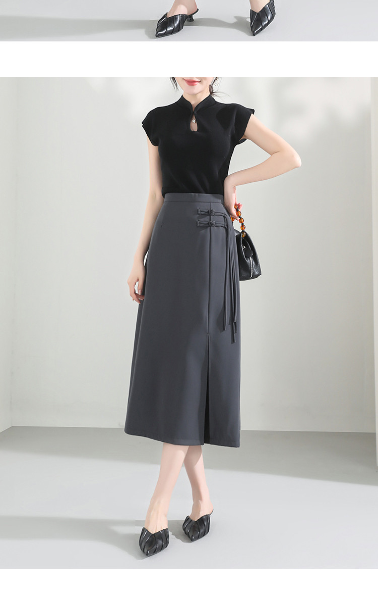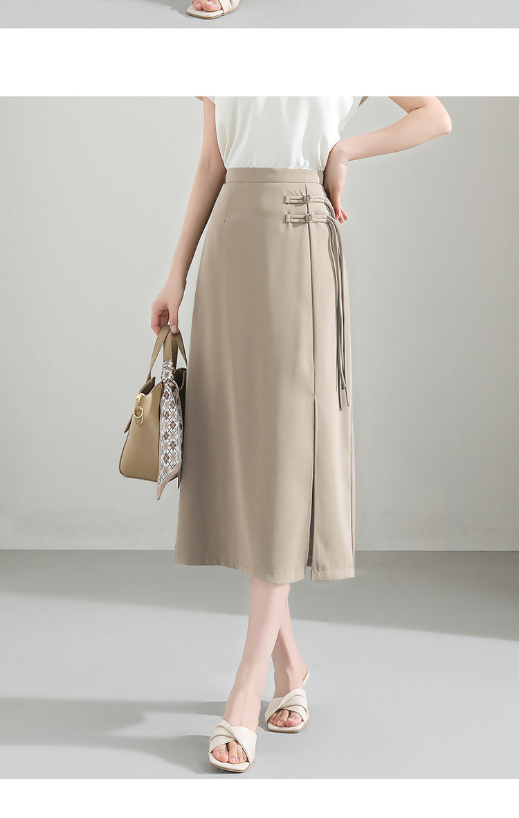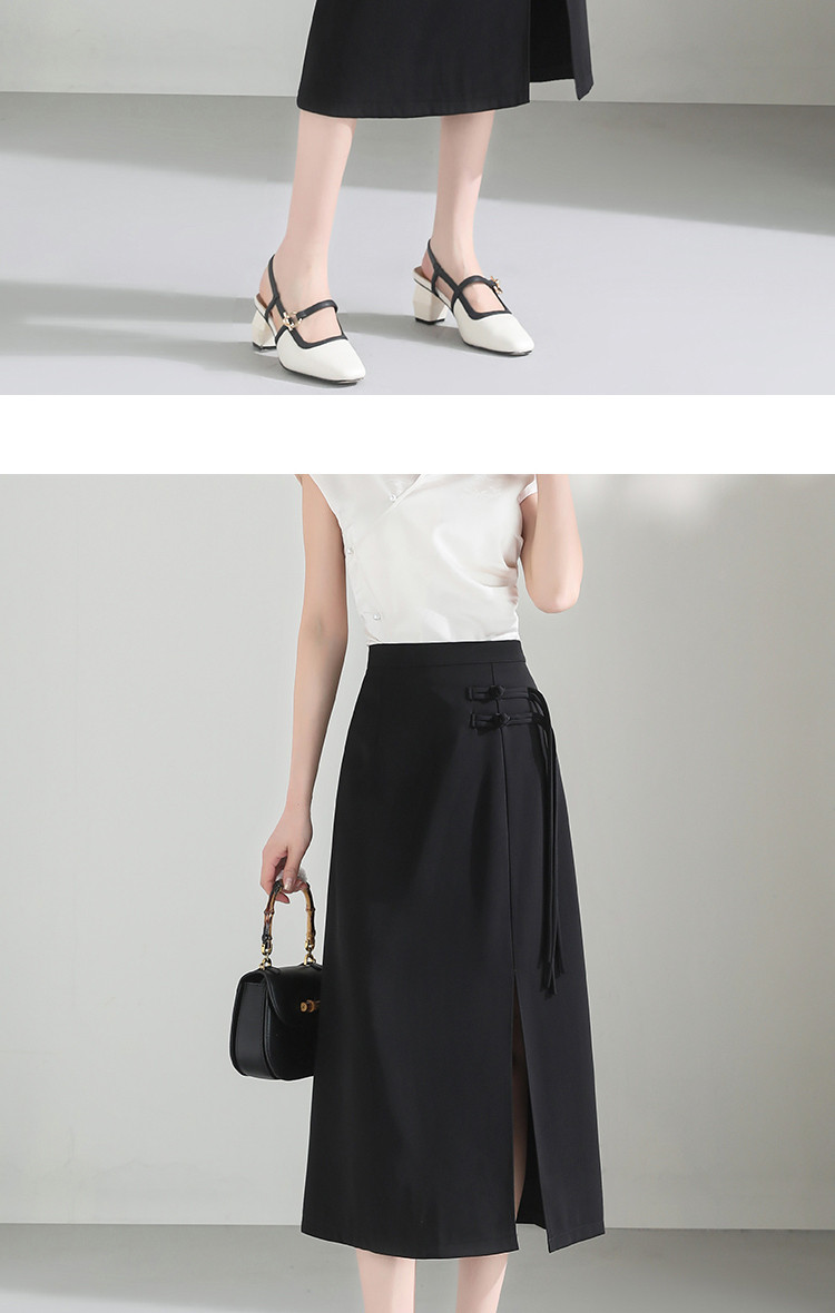 商品名称:夏季薄款新中式国风盘口流苏开叉设计半身裙时尚百搭通勤休闲长裙 440031